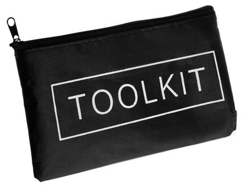 A container for preparing the mixture, a toothed stop, an L-shaped hexagon wrench, a candle key, a file, a screwdriver, a chain, a tire, a protective cover for the tire, a tool bag.