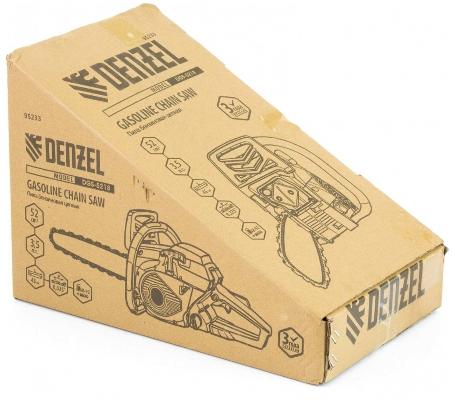 Contents of delivery: Petrol chain saw, tire, tire cover, chain, mix dispenser, tool kit, instruction manual with warranty card