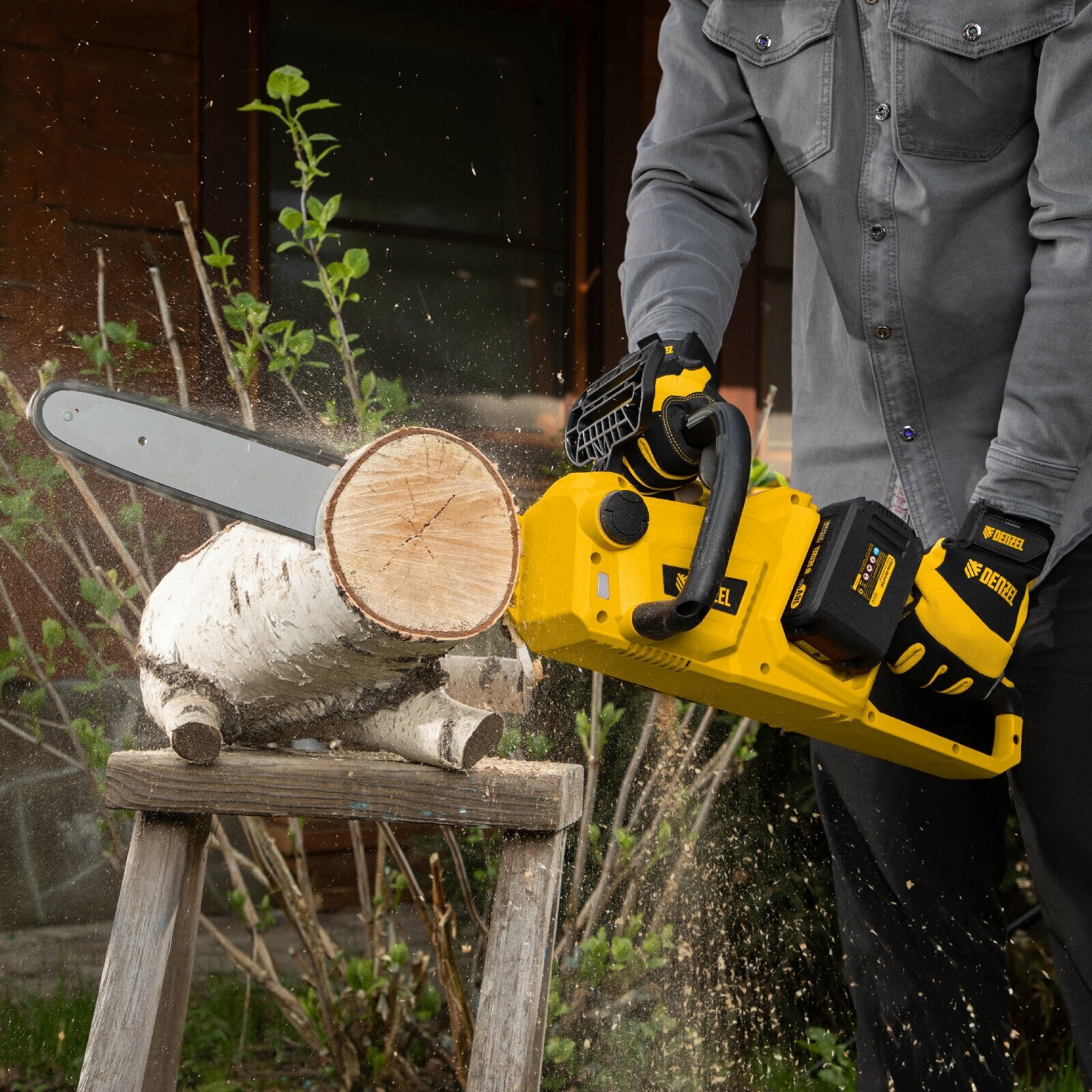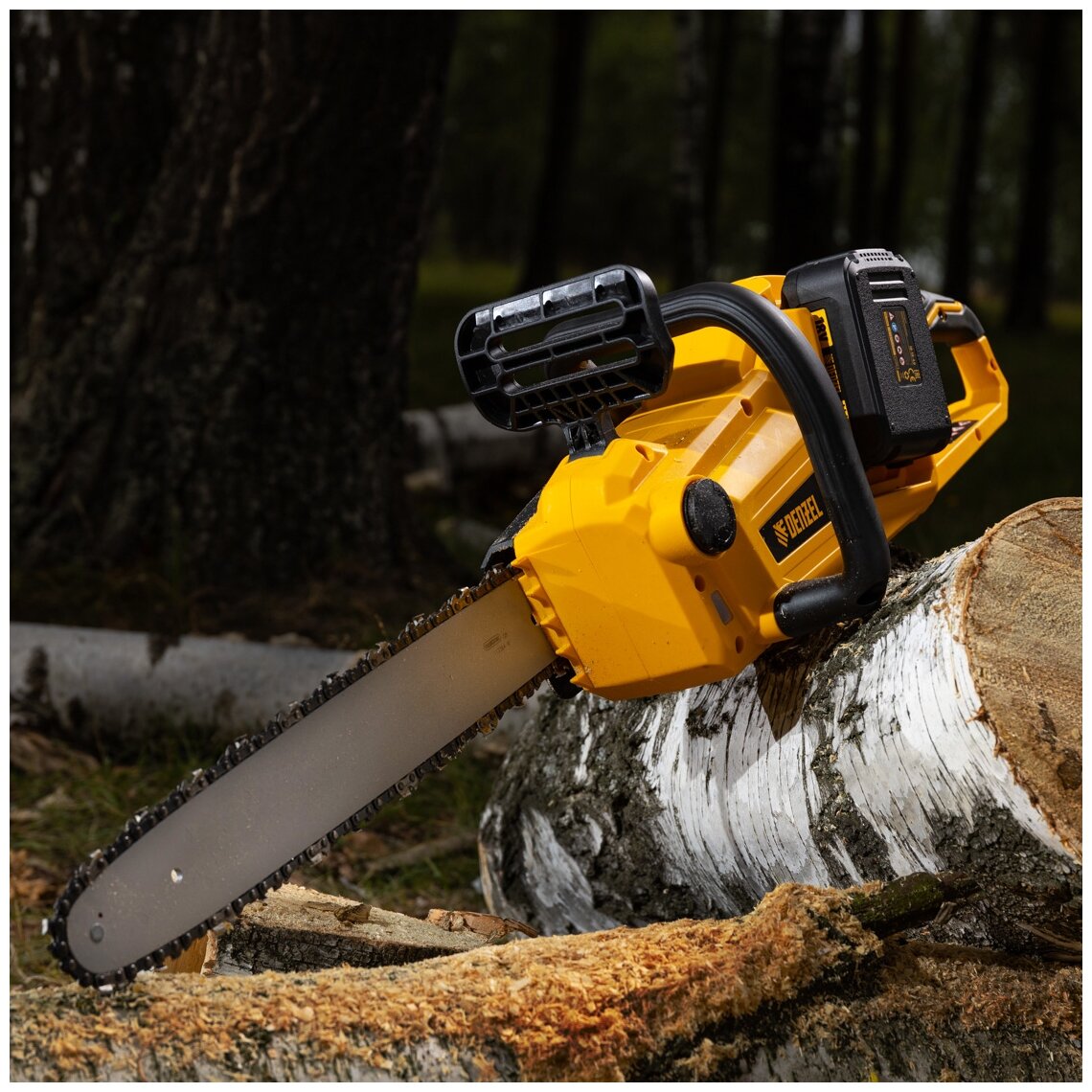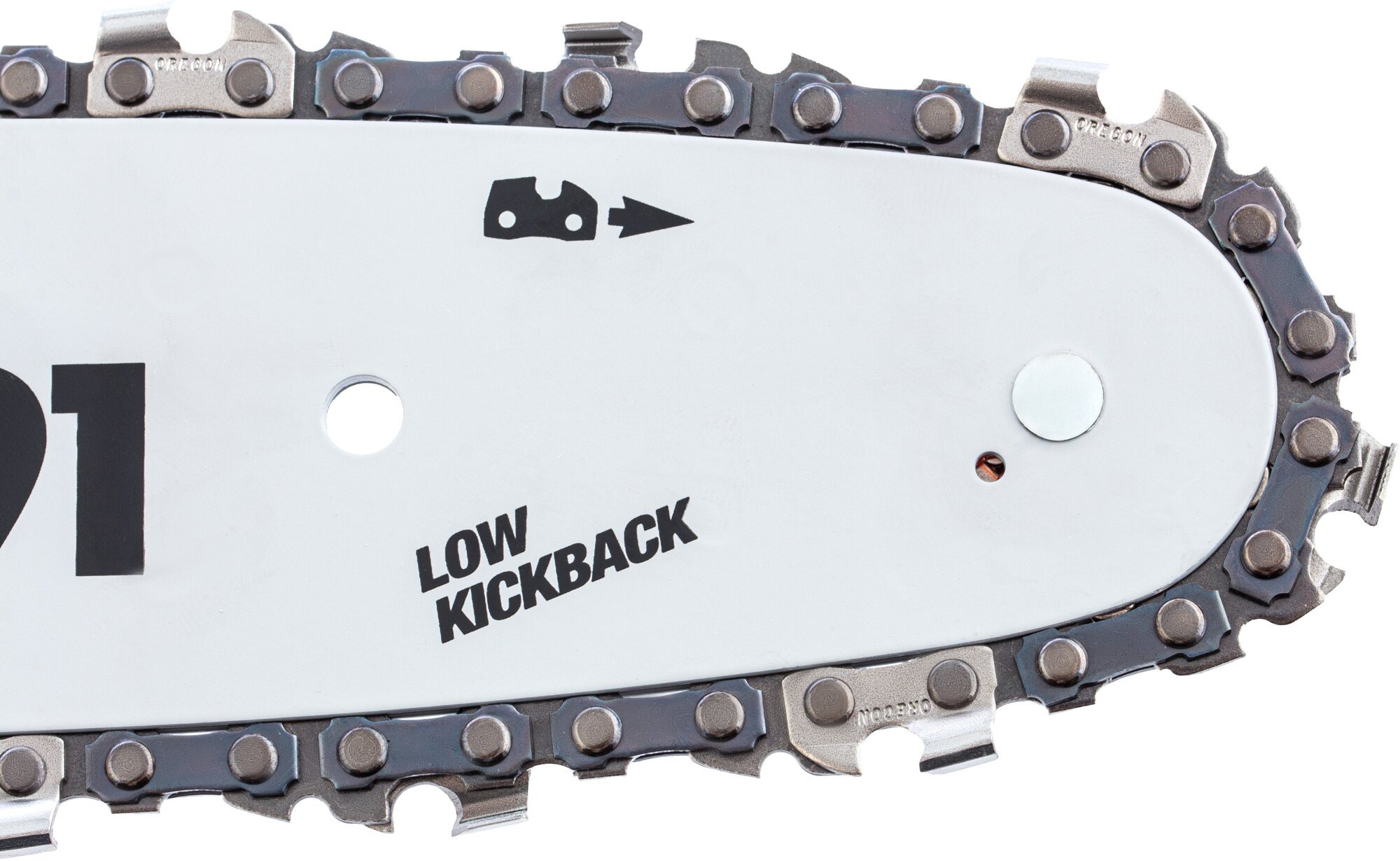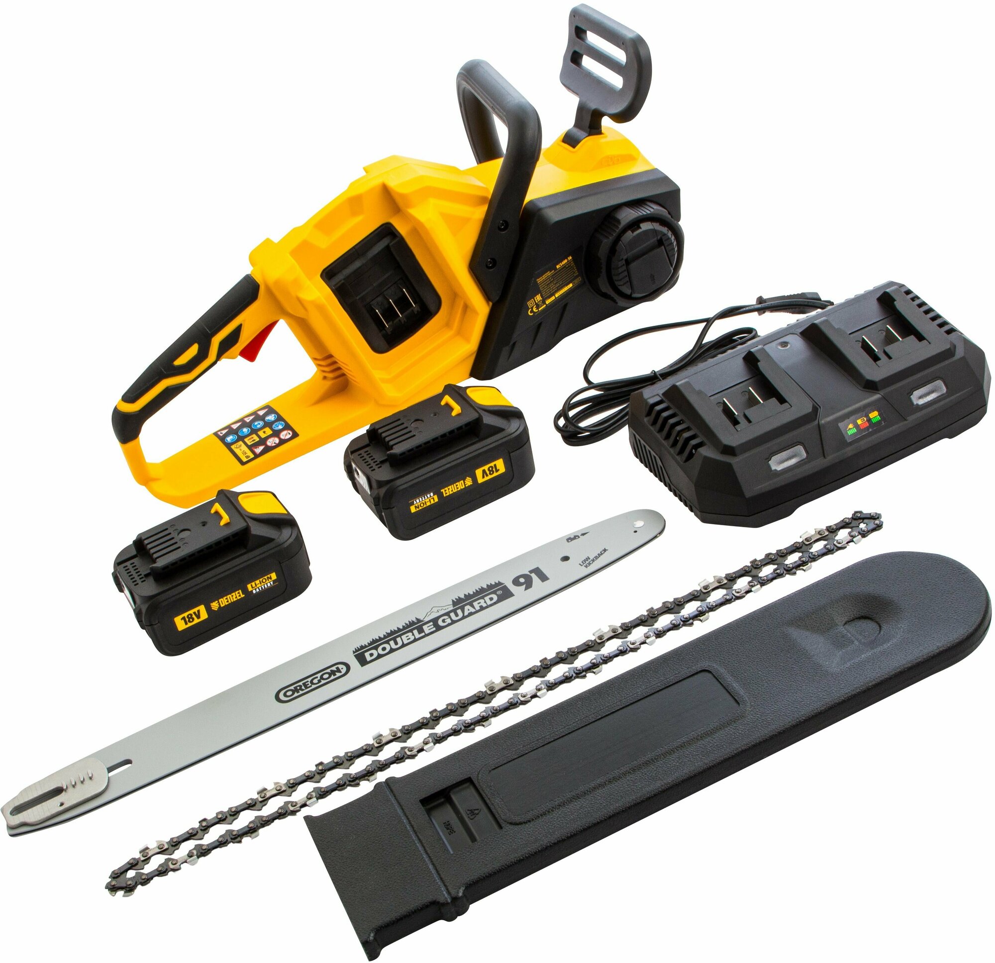 Brushless motor; simultaneous operation from two 18 V batteries; chain drive link thickness: 1.3 mm, number of links: 56 pcs.