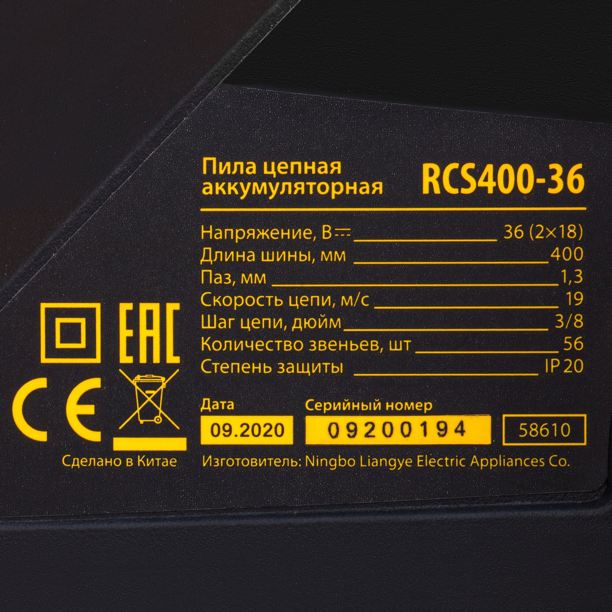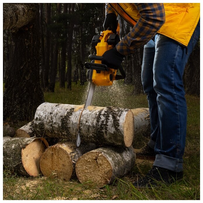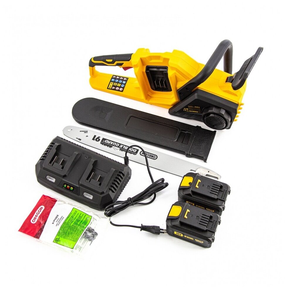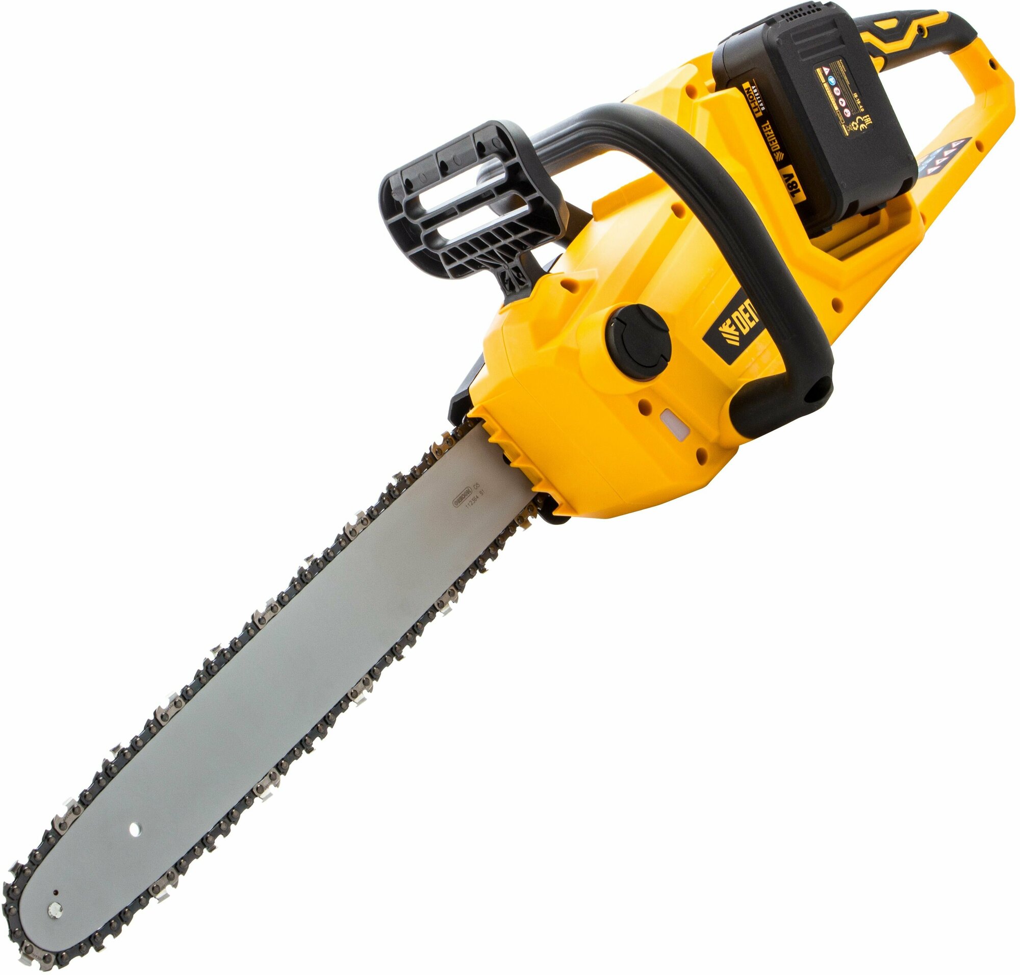 Brushless motor; simultaneous operation from two 18 V batteries; chain drive link thickness: 1.3 mm, number of links: 56 pcs.