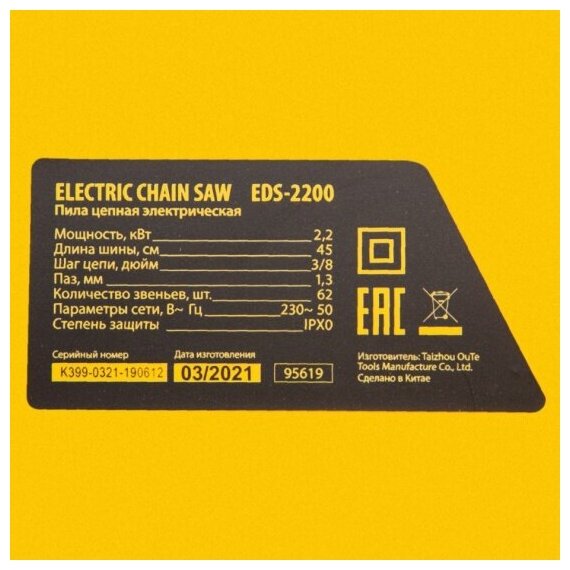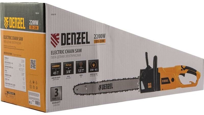 Description: Motor type: electric, Power W: 2200 W, bar length: 45 cm, chain pitch: 3/8 inch, anti-vibration, soft start, weight: 5.30 kg