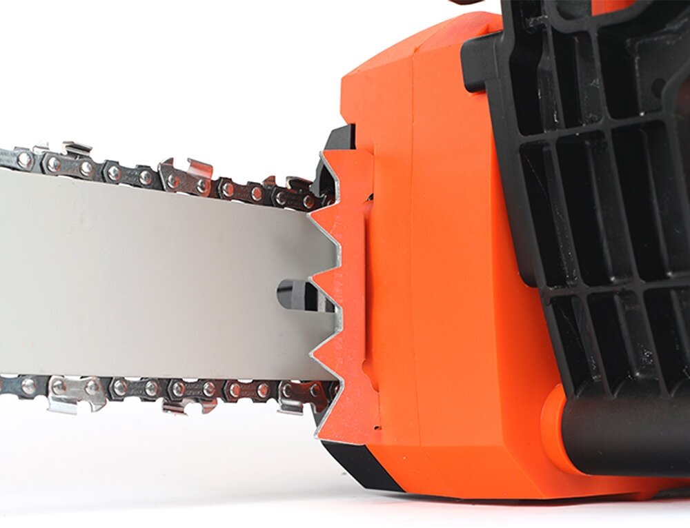 Soft start, electronic motor protection, chain brake, toolless chain tension adjustment