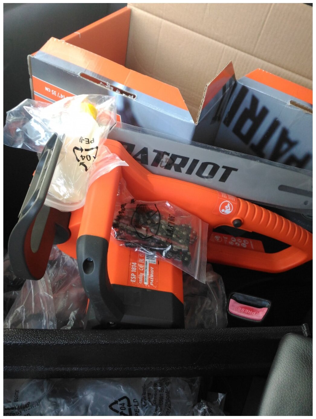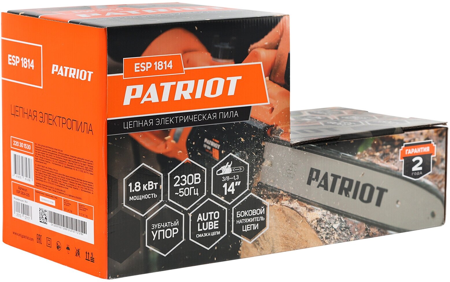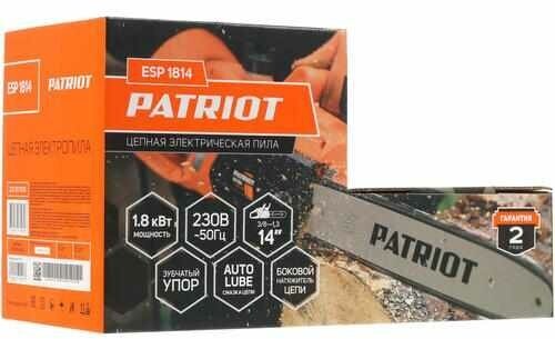 Contents of delivery: Electric chain saw Patriot ESP 1814, chain, protective cover, tire, set of keys