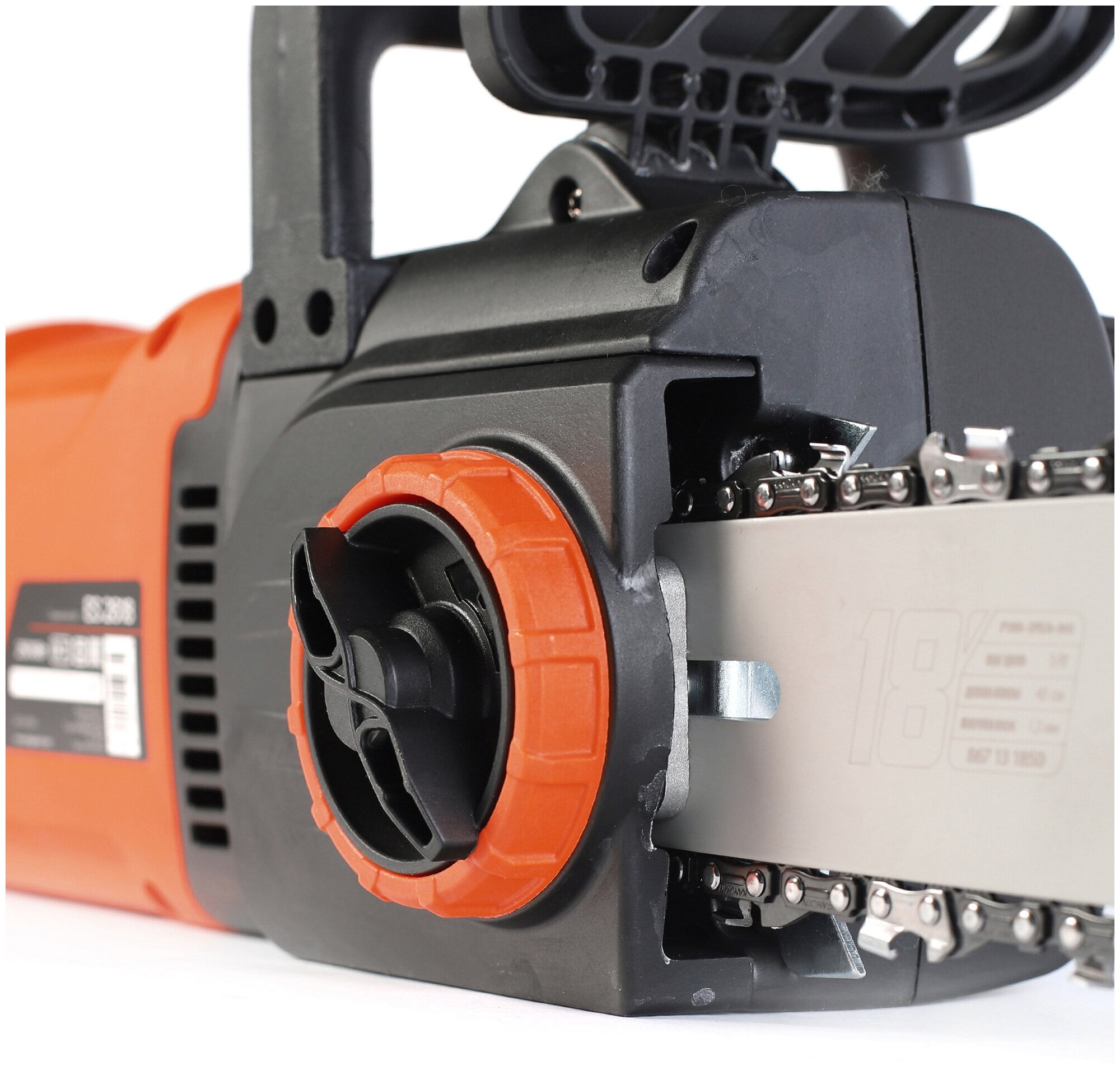 Soft start, engine braking, chain brake, toolless chain tension adjustment
