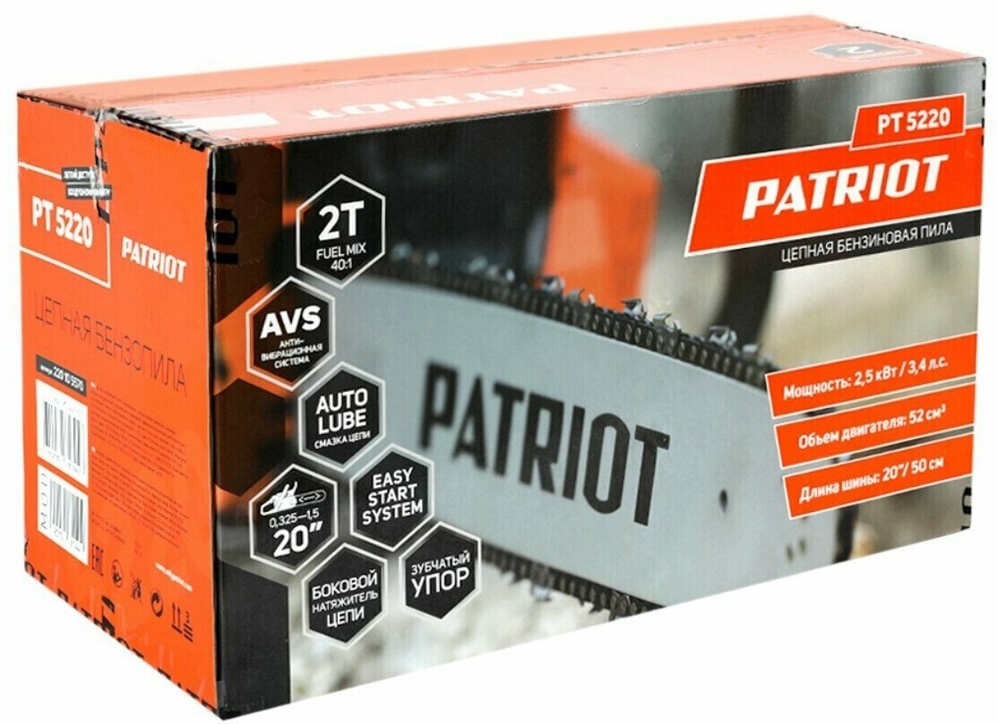Engine type: gasoline, W: 2500 W, hp: 3.40 hp, tire length: 50 cm, chain pitch: 0.325 inch, engine size: 52 cm³, anti-vibration, weight: 6.98 kg