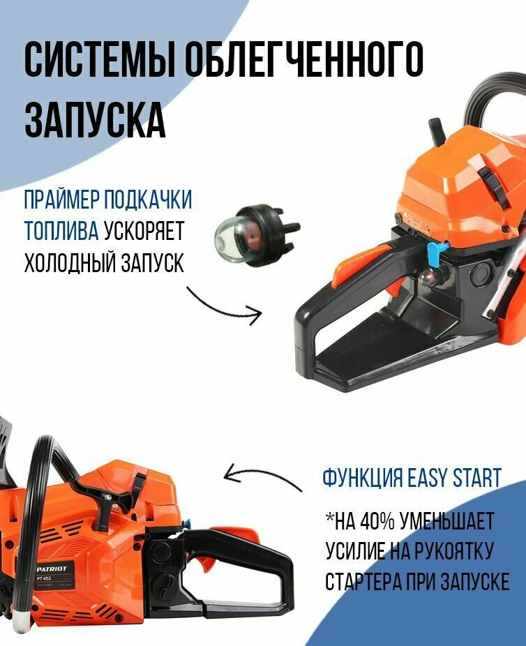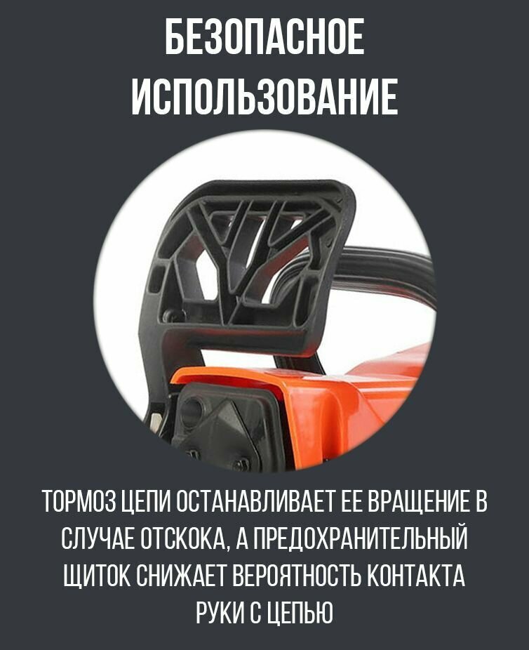 Soft start, engine braking, chain brake, toolless chain tension adjustment