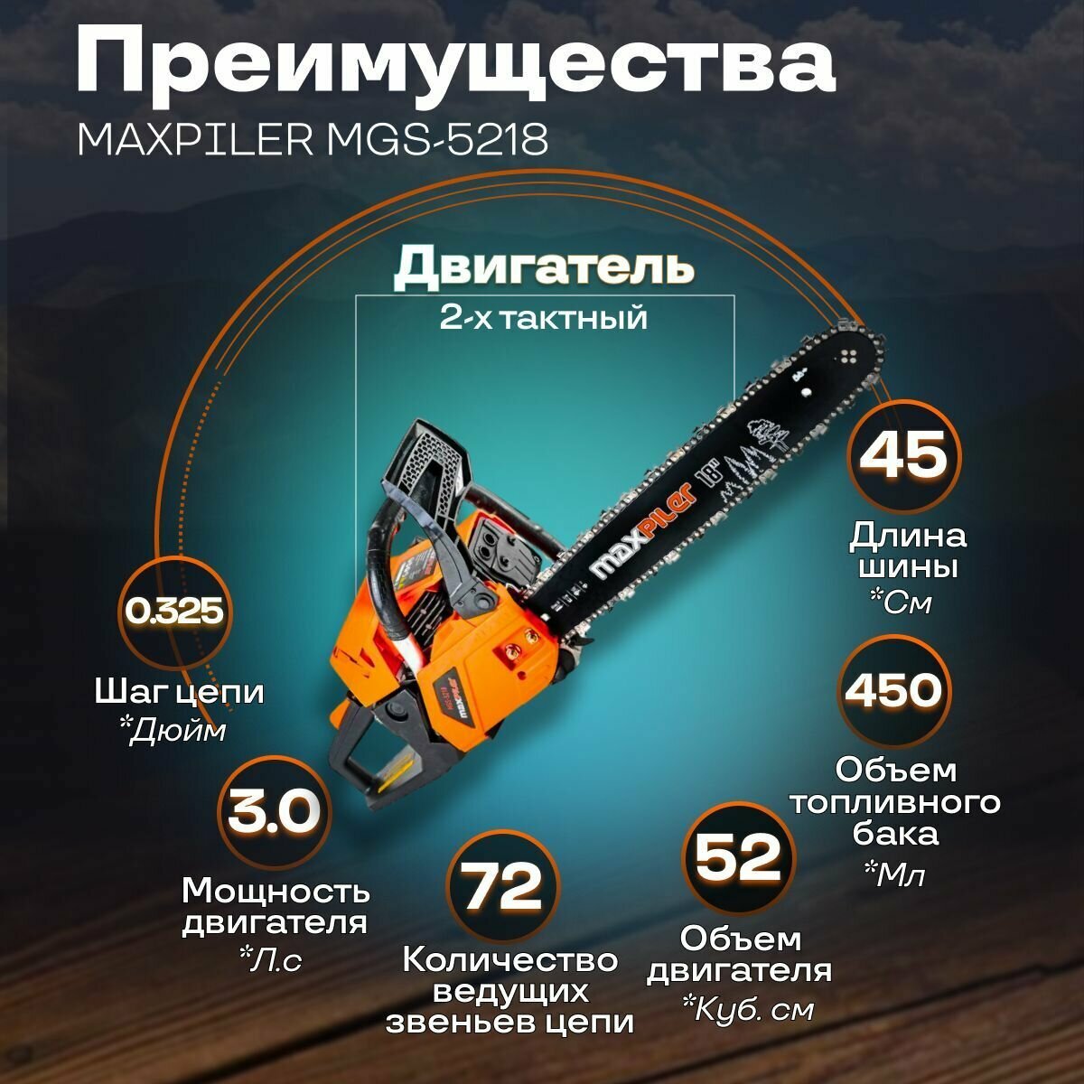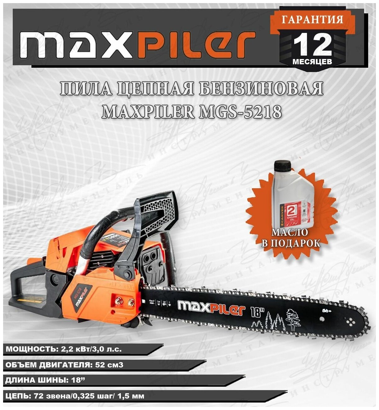 Engine type: gasoline, Power W: 2200 W, HP power: 3 HP, bar length: 18 cm, chain pitch: 0.325 inch, engine size: 52 cm³, cutting length: 450 mm, anti-vibration, smooth start, weight: 7 kg