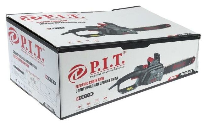 Electric chain saw, box, saw bar, saw chain, toothed stop, wrench, instruction manual