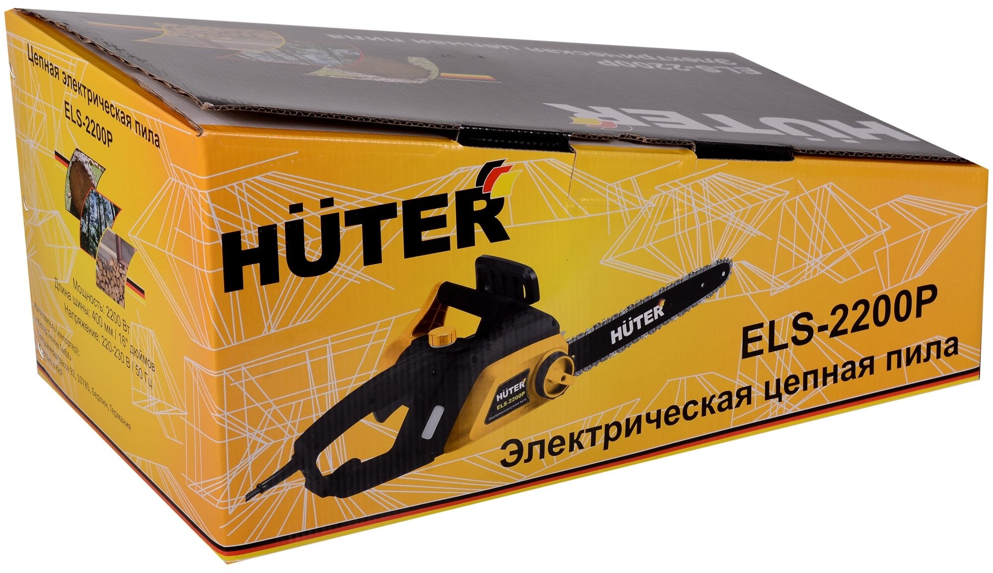 Motor type: electric, Power W: 2200 W, HP power: 2.90 HP, bar length: 40 cm, chain pitch: 3/8 inch, cutting length: 400 mm, soft start, weight: 5.20 kg