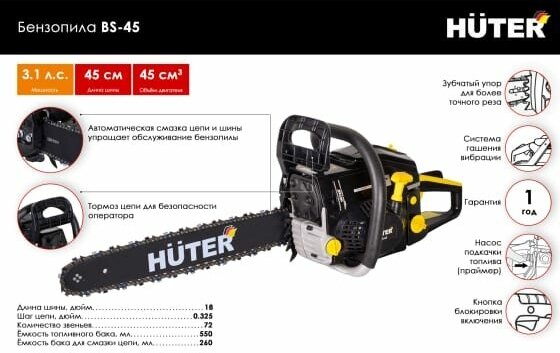 Gasoline saw Huter BS-45 2300 W/3.1 HP