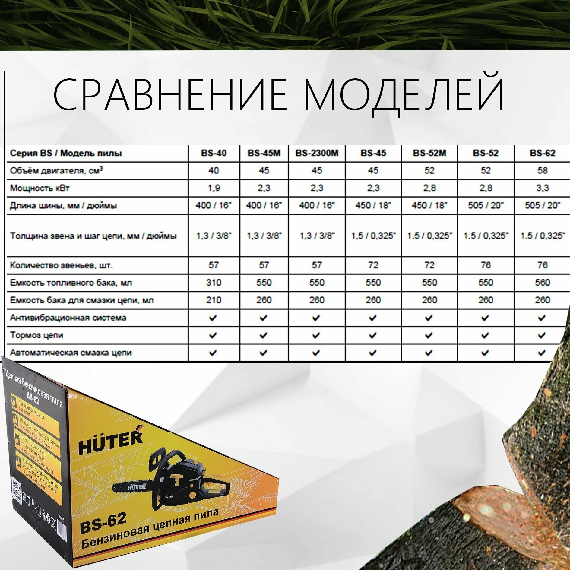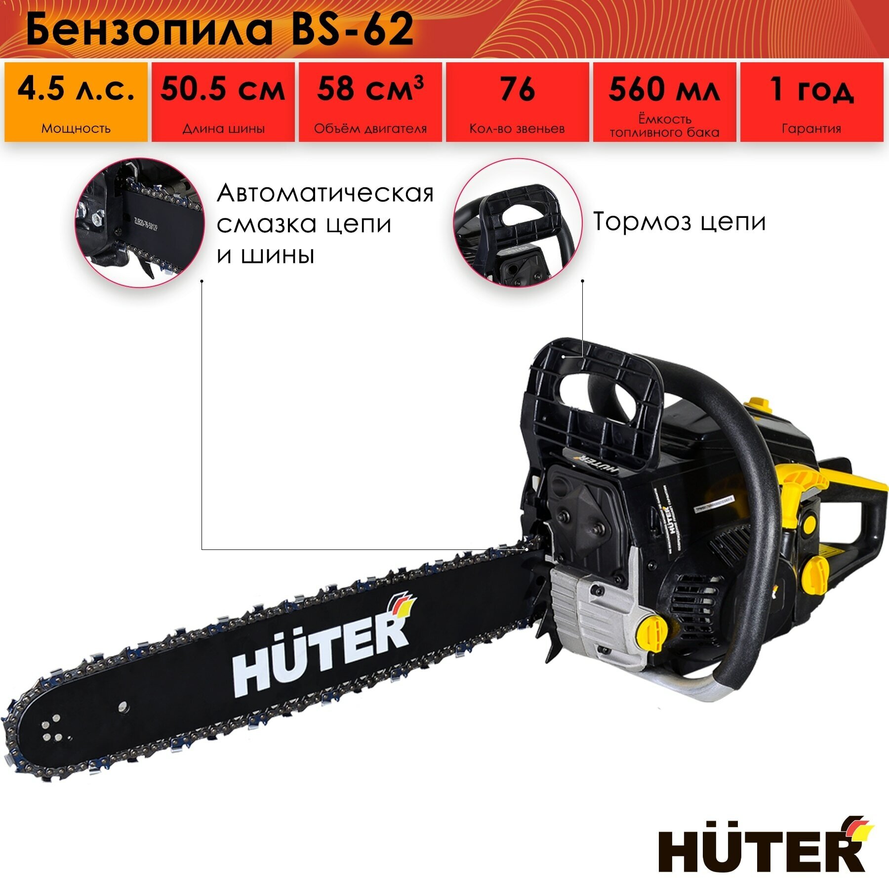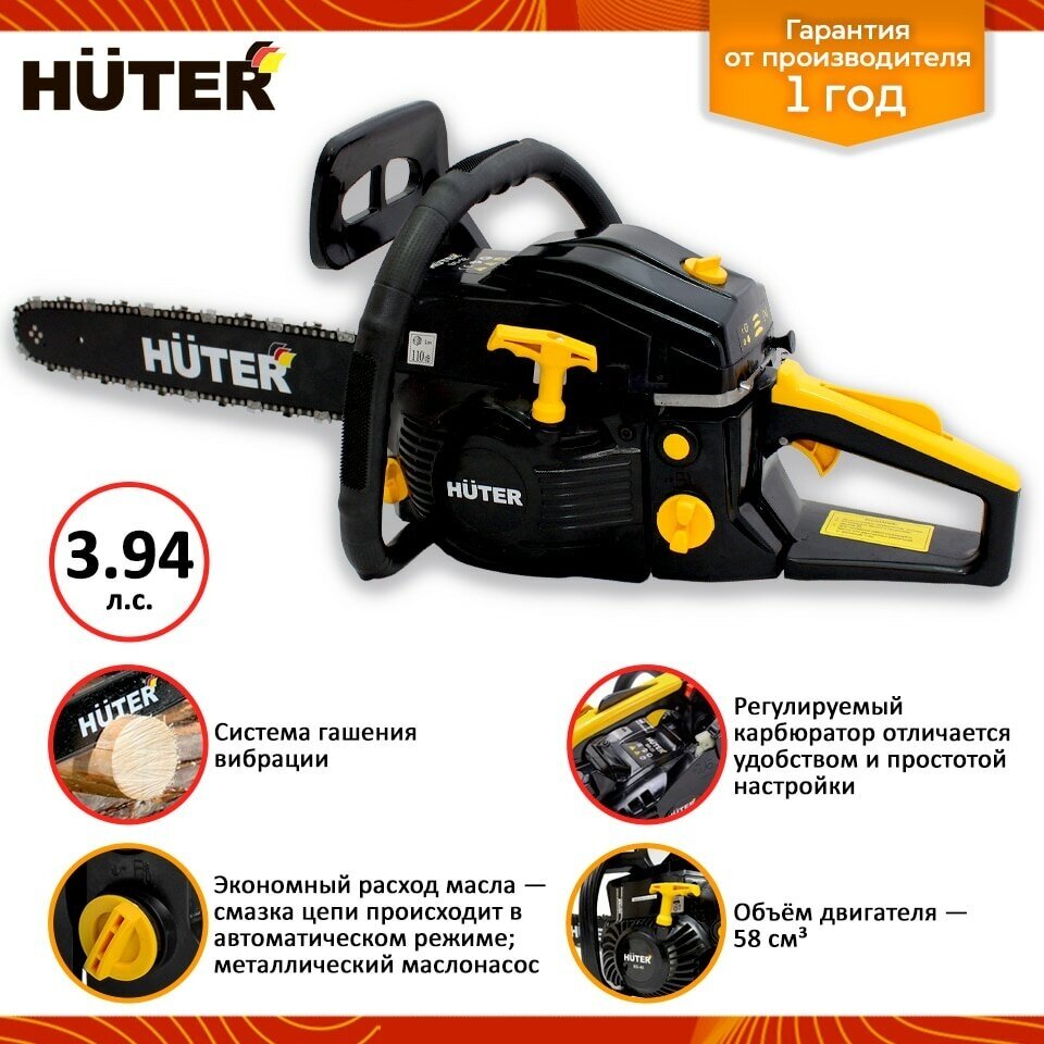 Engine type: gasoline, W: 3300 W, hp: 4.49 hp, bar length: 50.50 cm, chain pitch: 0.325 inch, engine displacement: 58 cm³, cutting length: 500 mm, anti-vibration, smooth start, weight: 7.50 kg