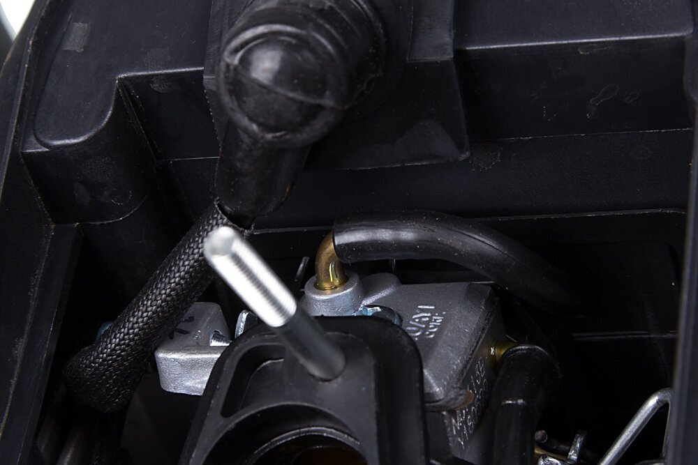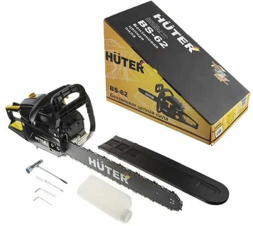 Bar, chain, guard, toothed stop, mixing container, tool kit