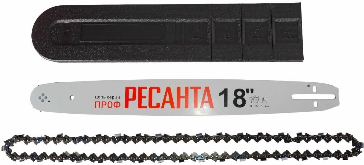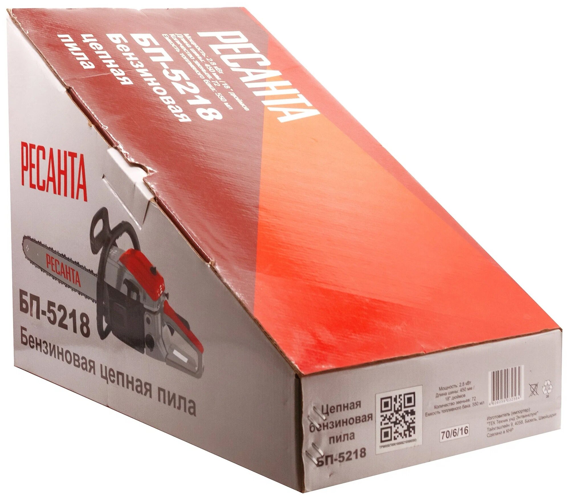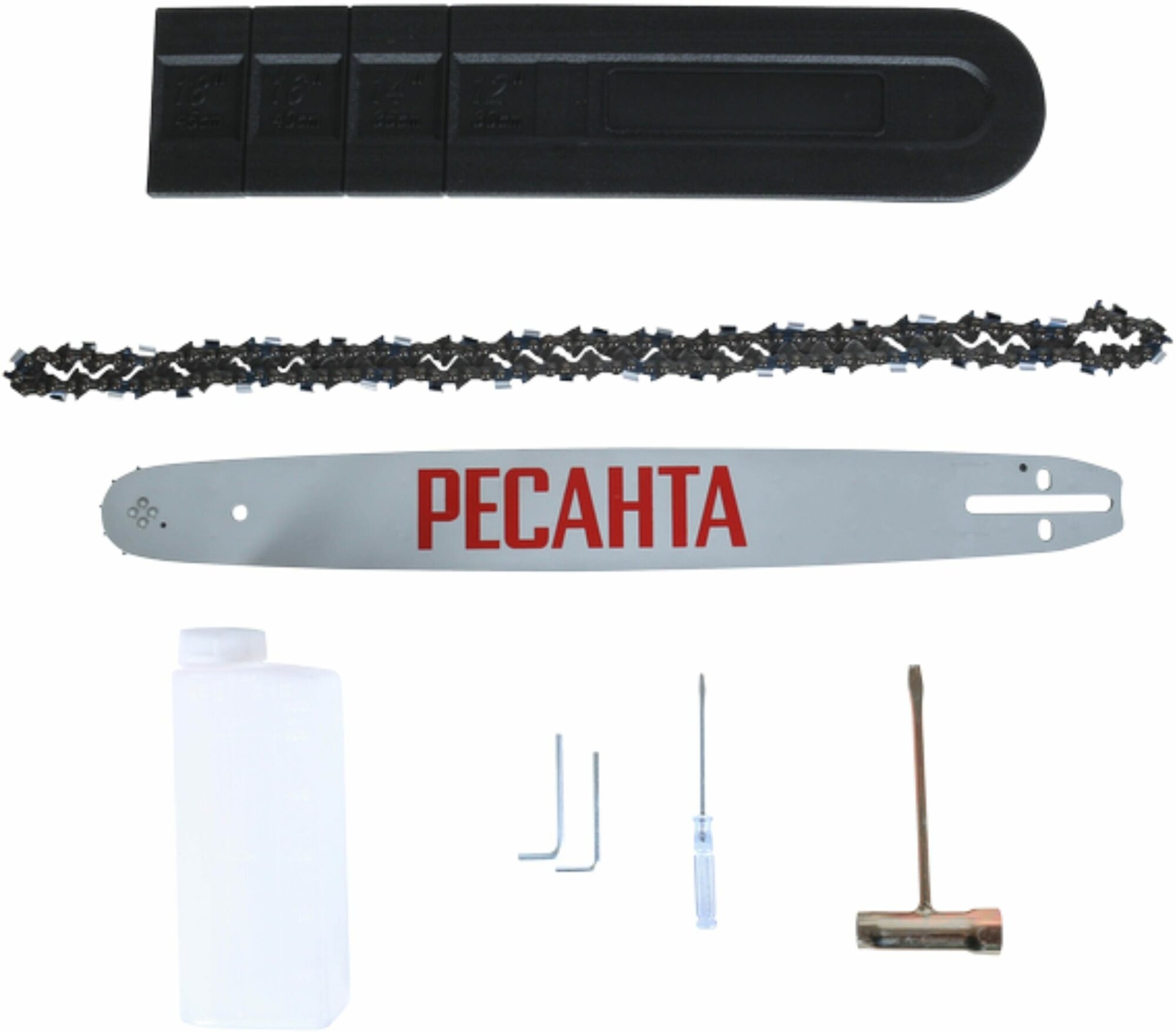 Chainsaw - 1 pc., bar - 1 pc., chain - 1 pc., protective casing of the bar - 1 pc., container for mixing the fuel mixture - 1 pc., product data sheet - 1 pc., set of tools and accessories - 1 pc. ., package