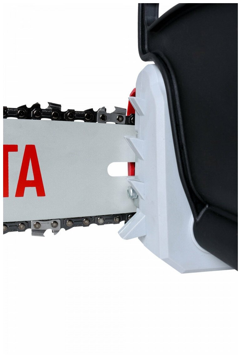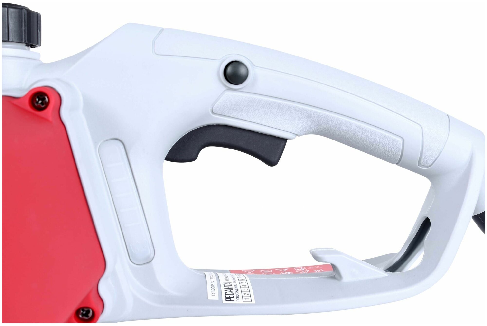 Peculiarities: A viewing window is provided to control the oil level, the gear stop protects the front part of the saw body from damage on branches and other elements, the lock button eliminates deliberate starting - safe