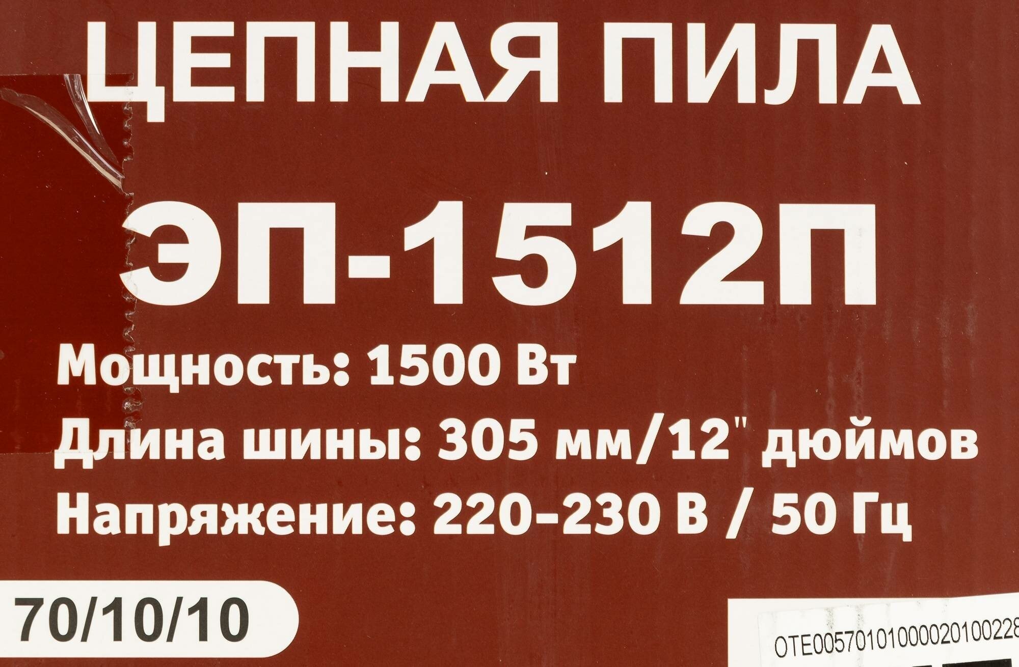 Contents of delivery: Power saw - 1 pc, Bar - 1 pc, Chain - 1 pc, Protective cover of the bar - 1 pc, Product data sheet - 1 pc, Universal key - 1 pc, Packing