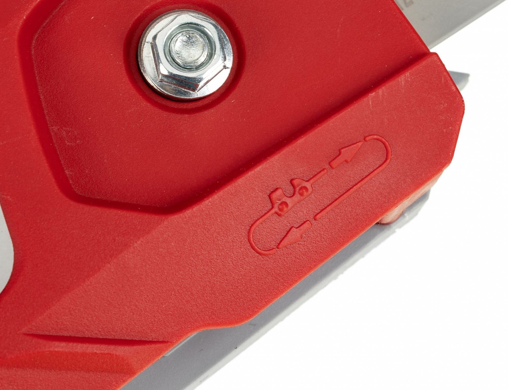 Peculiarities: A viewing window is provided to control the oil level, the gear stop protects the front part of the saw body from damage on branches and other elements, the lock button eliminates deliberate starting - safe