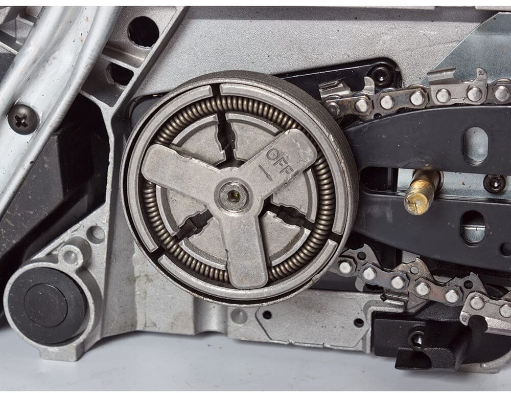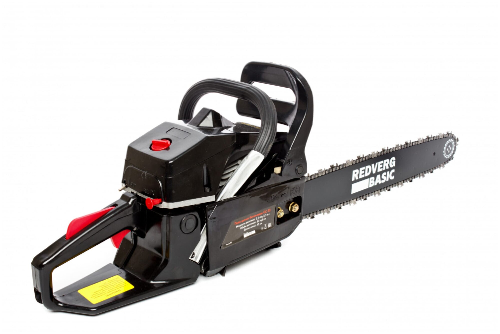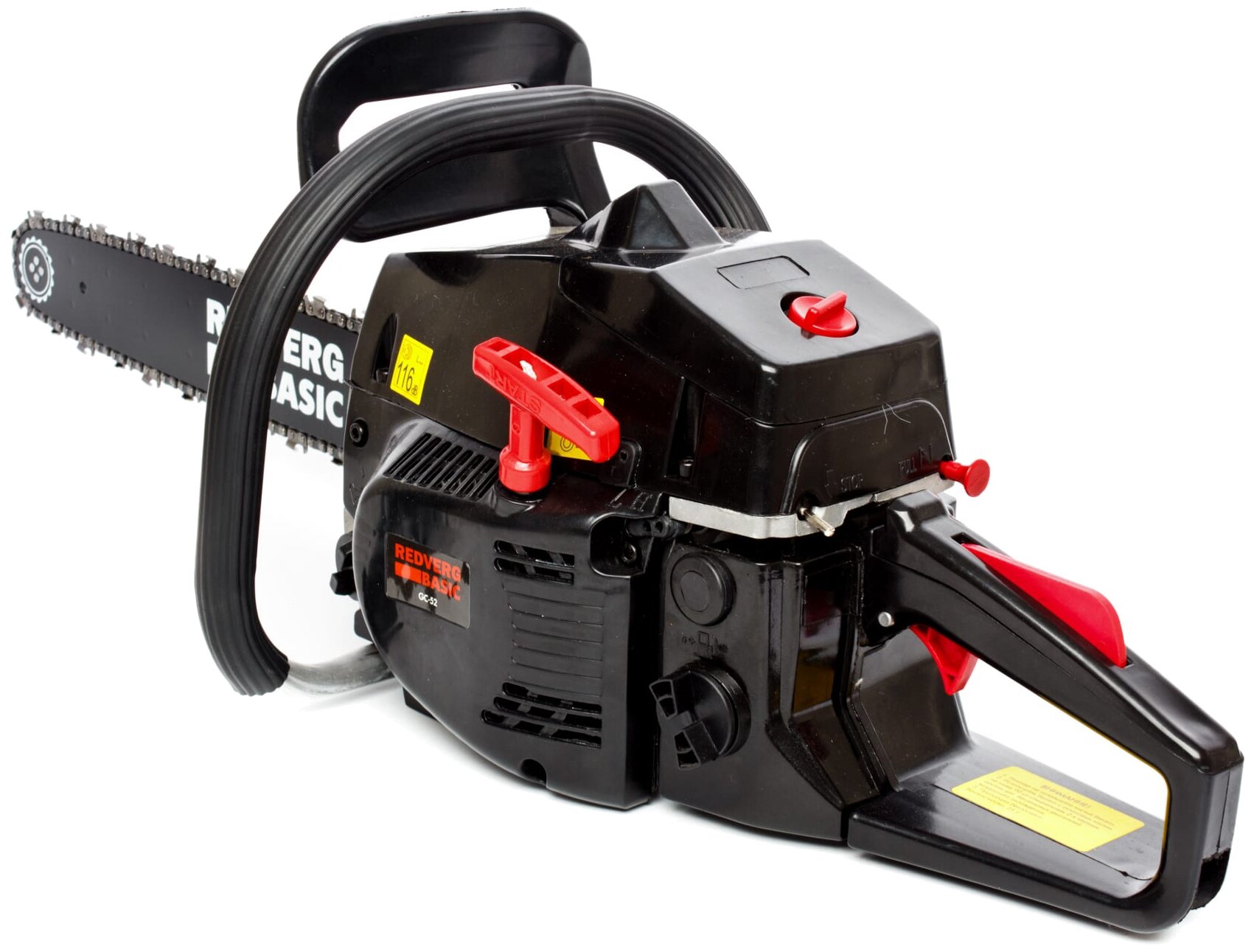 Saw, guide bar, bar cover, saw chain, fuel tank, set of tools and wrenches, instructions