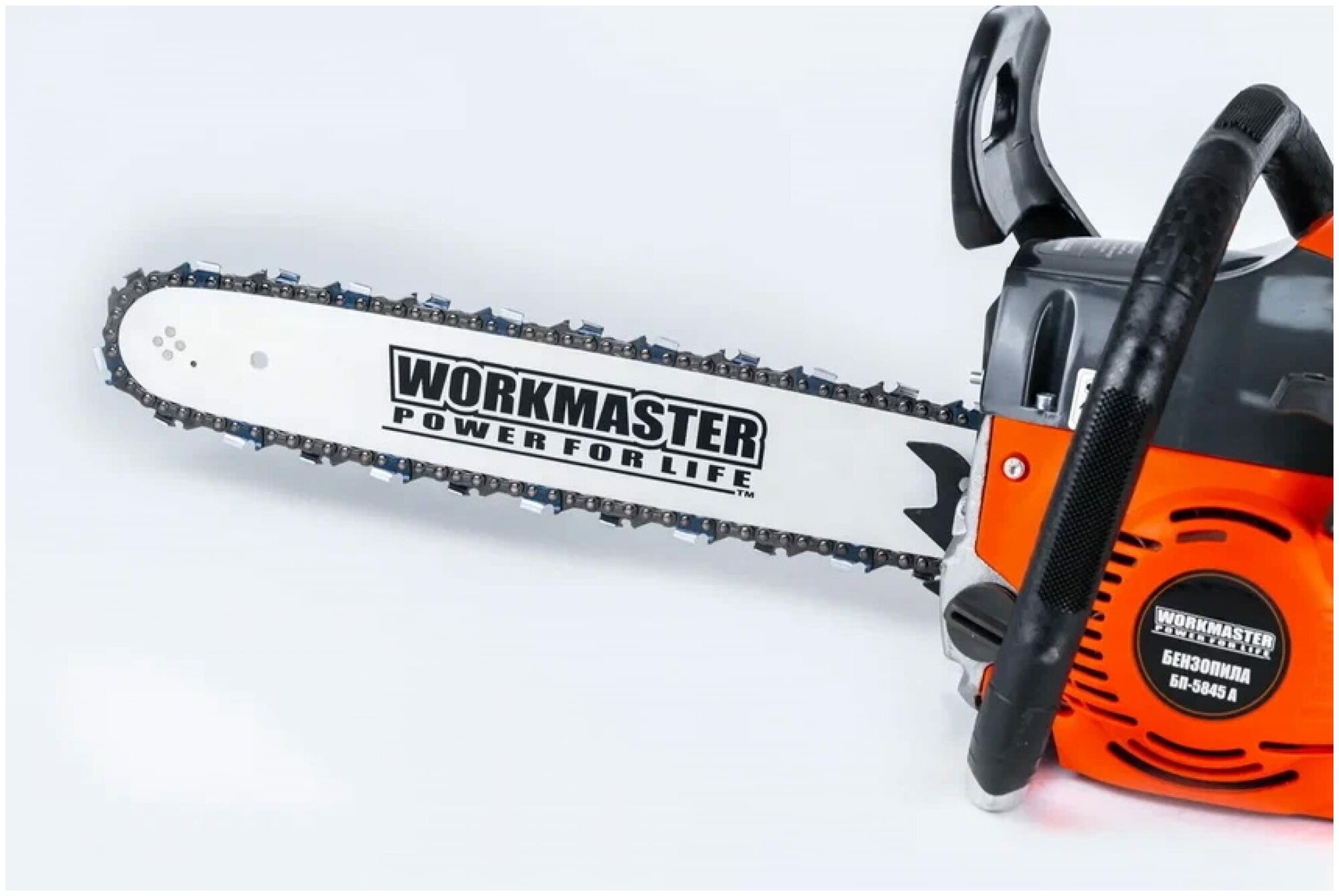 Gasoline engine - for autonomous operation Maximum speed: 11000 rpm Chain brake Automatic chain lubrication - for easy maintenance WorkMaster BP-5845A