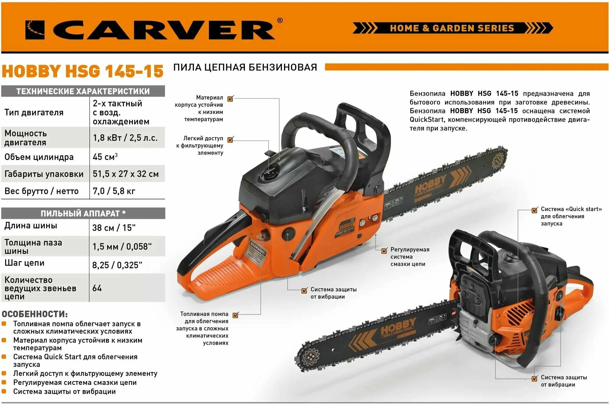 Gasoline saw Carver HOBBY HSG 145-15 1800 W/2.5 hp