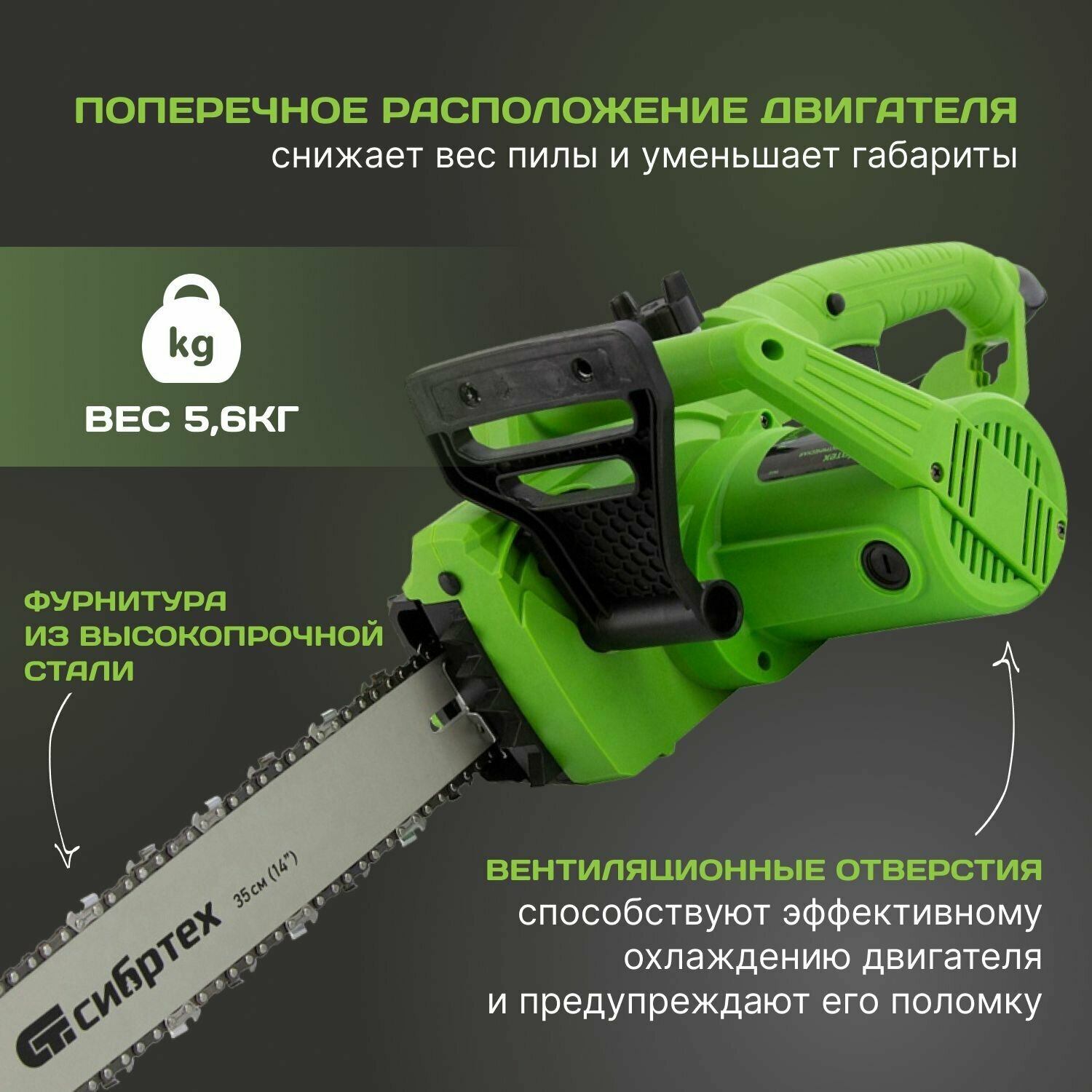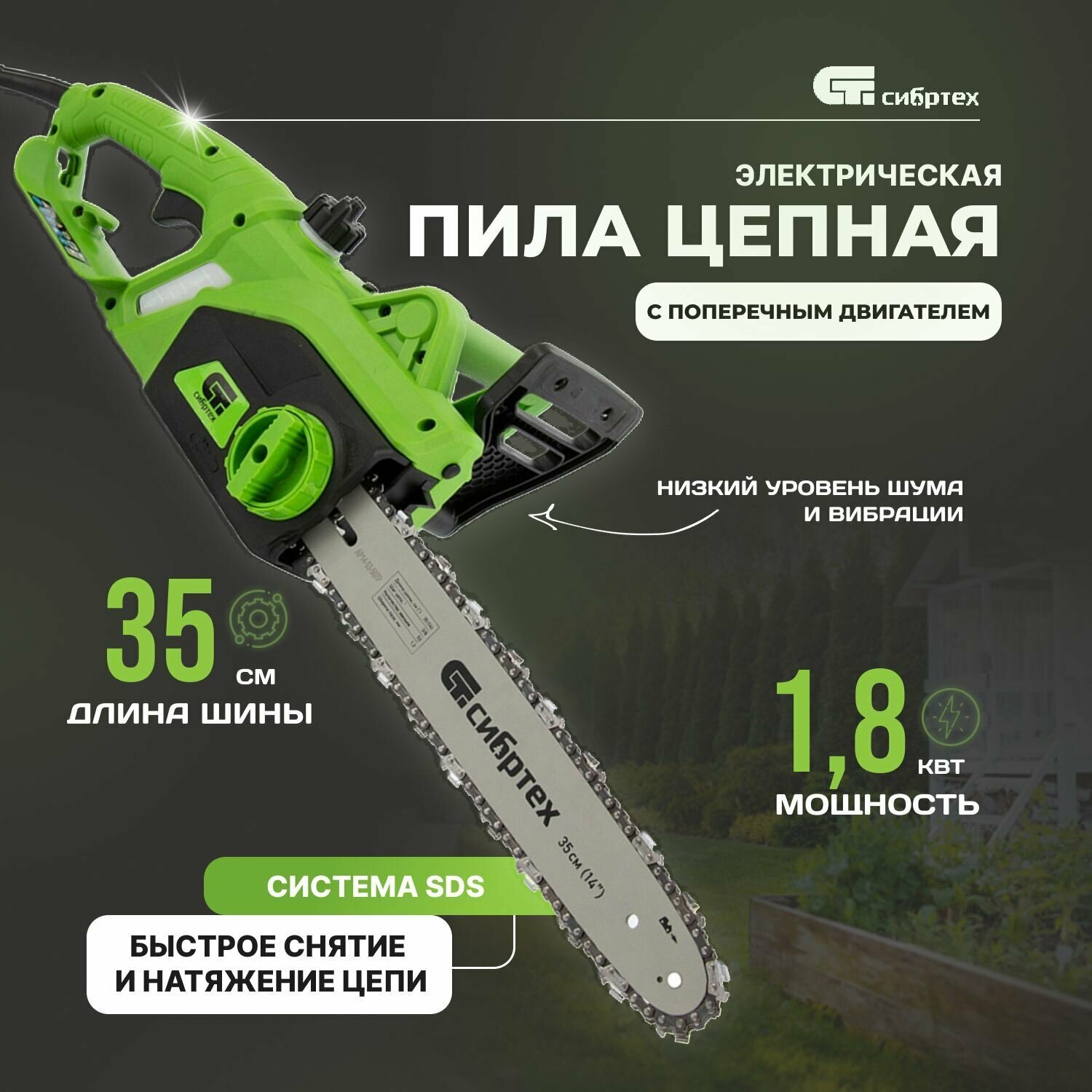 Motor type: electric, Wattage: 1800 W, bar length: 35 cm, chain pitch: 3/8 inch