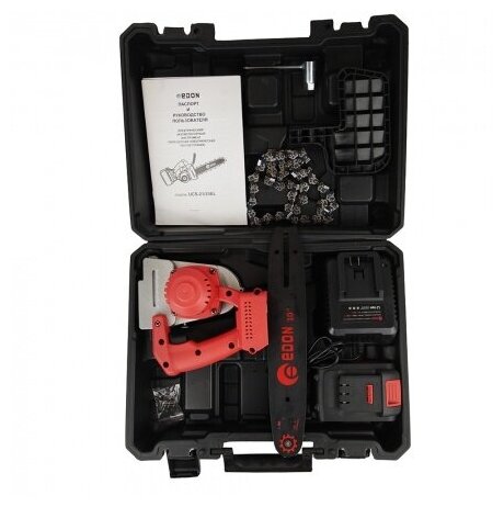 Chain saw, saw chain, battery, key, charger, manual, passport, plastic case