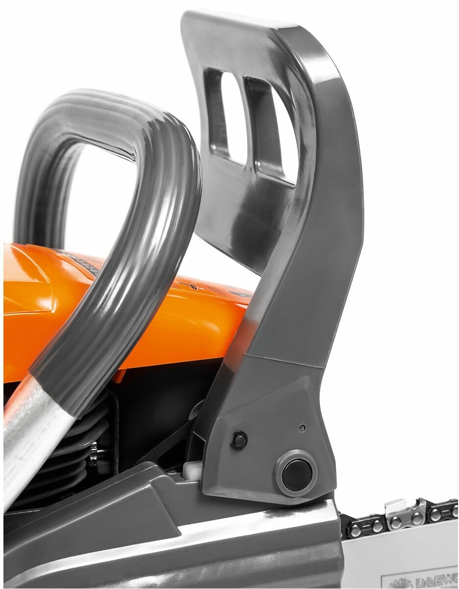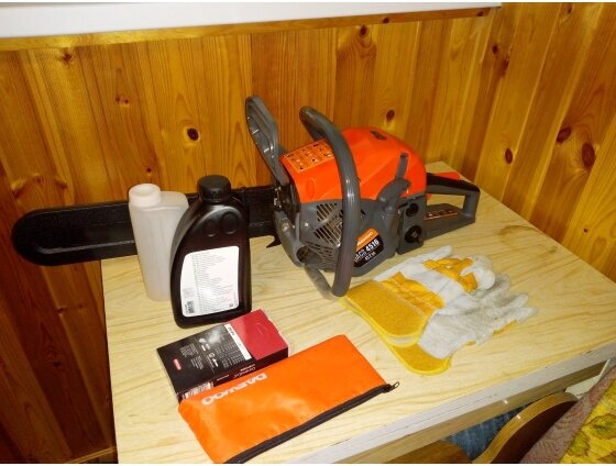 Peculiarities: 2-stroke petrol engine 045 two stroke; chain link thickness 1.5 mm, number of links 66 pcs., number of cutting links 33 pcs.; weight of the equipped saw without fuel 6.4 kg