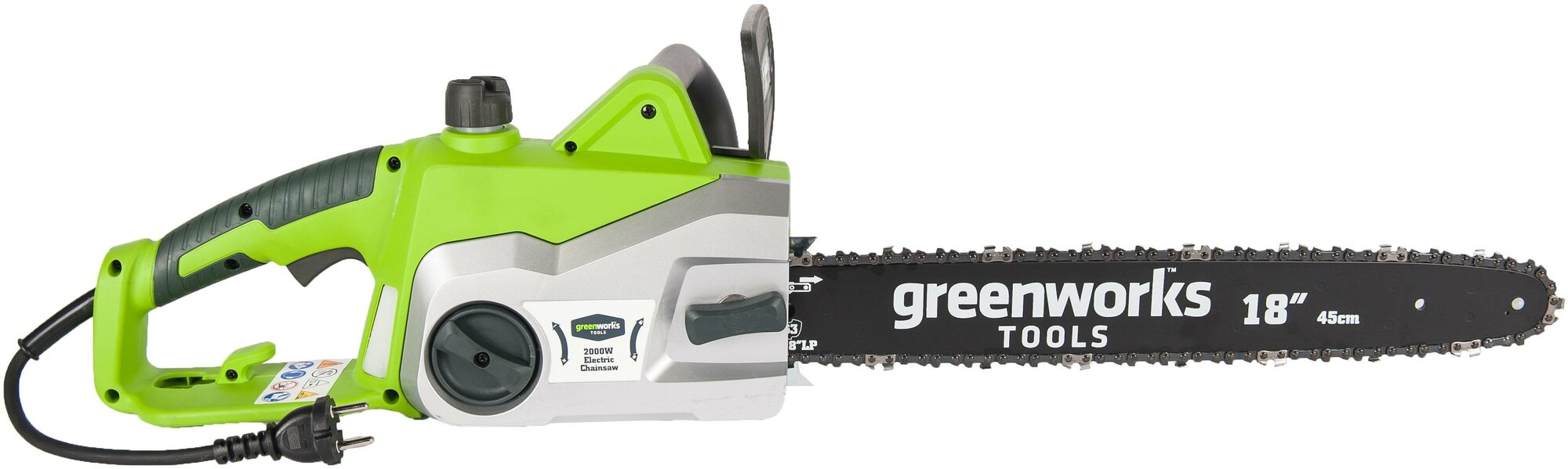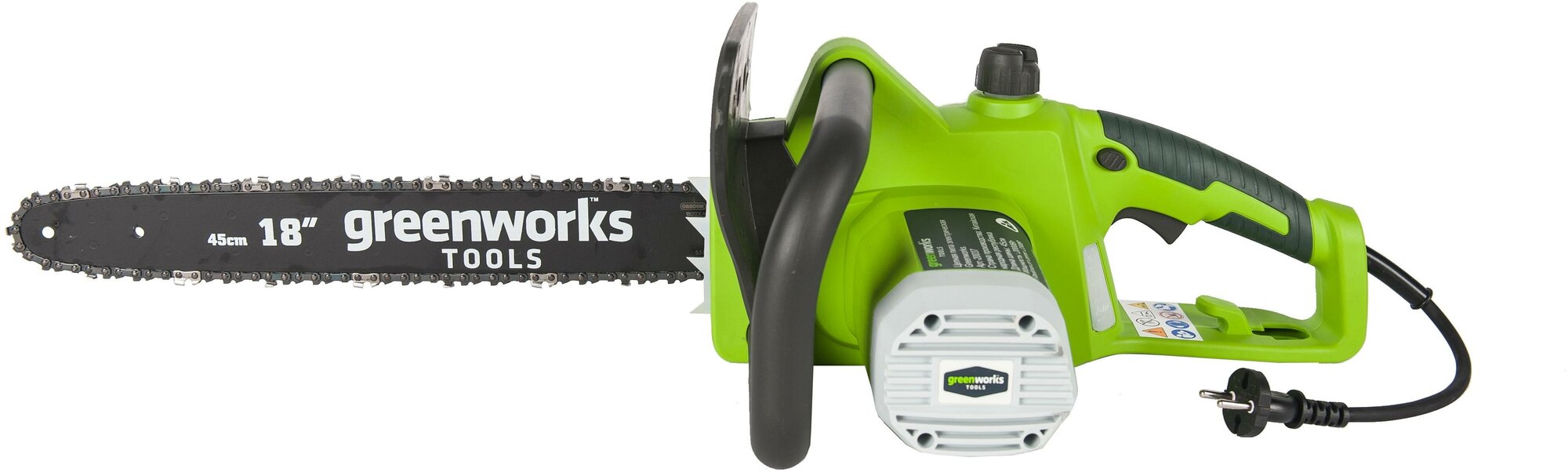 Functions and features: Electronic motor protection, chain brake, toolless chain tension adjustment