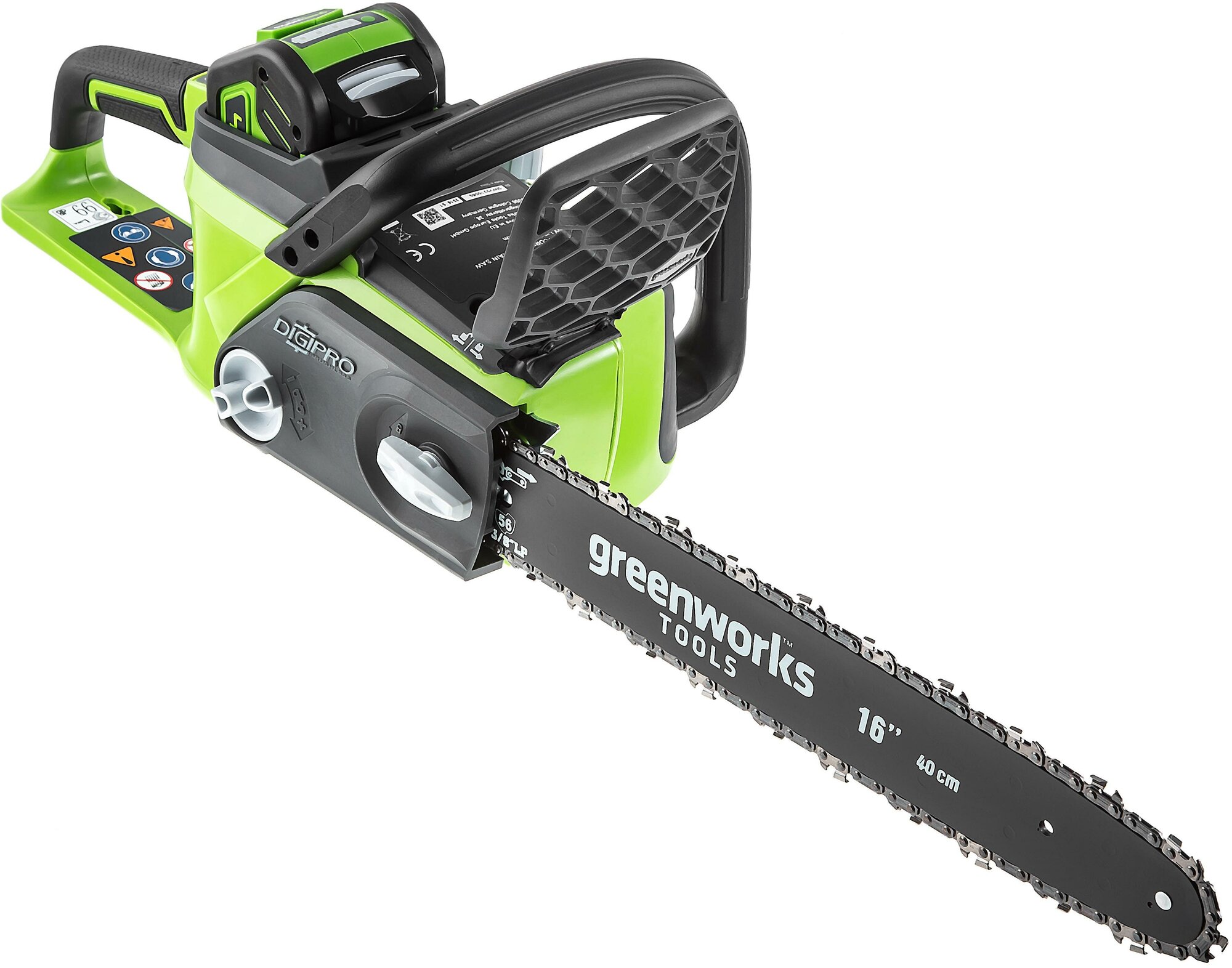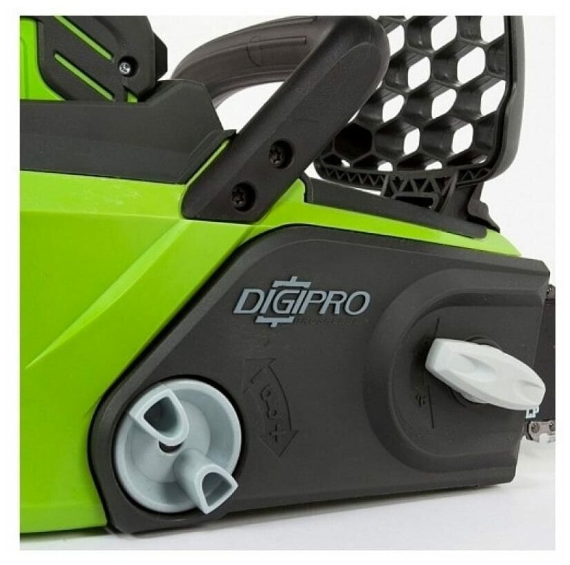 DigiPro brushless induction motor, switch-on fuse and chain brake, motor overload protection, transparent oil reservoir, rubber grip