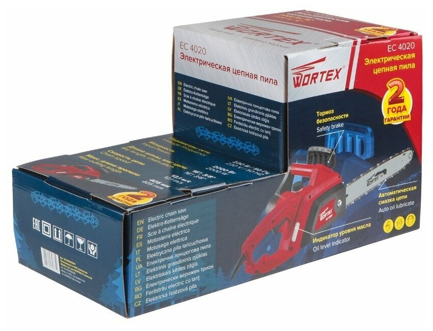 Motor type: electric, Power W: 2000 W, bar length: 40 cm, chain pitch: 3/8", cutting length: 400 mm, soft start, weight: 5 kg
