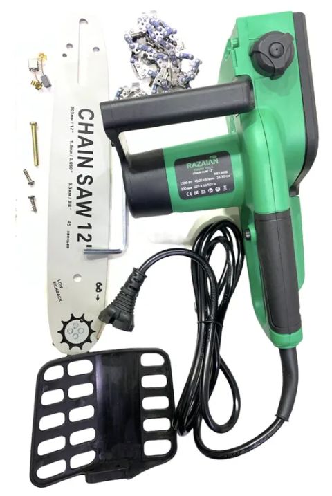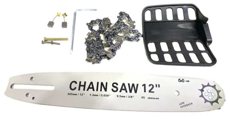 1. Electric saw - 1 pc. 2. Tire - 1 pc. 3. Saw chain - 1 pc. 4. Key - 1 pc. 5. Operation manual - 1 pc.