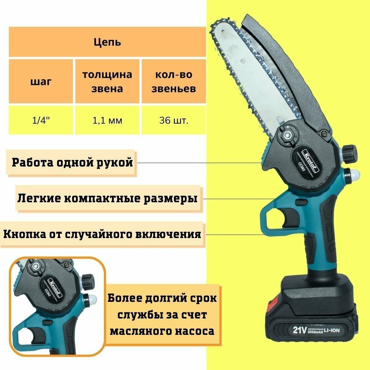 Motor type: electric, battery operation, Wattage: 800 W, hp power: 1.09 hp, bar length: 15.24 cm, chain pitch: 1/4 inch