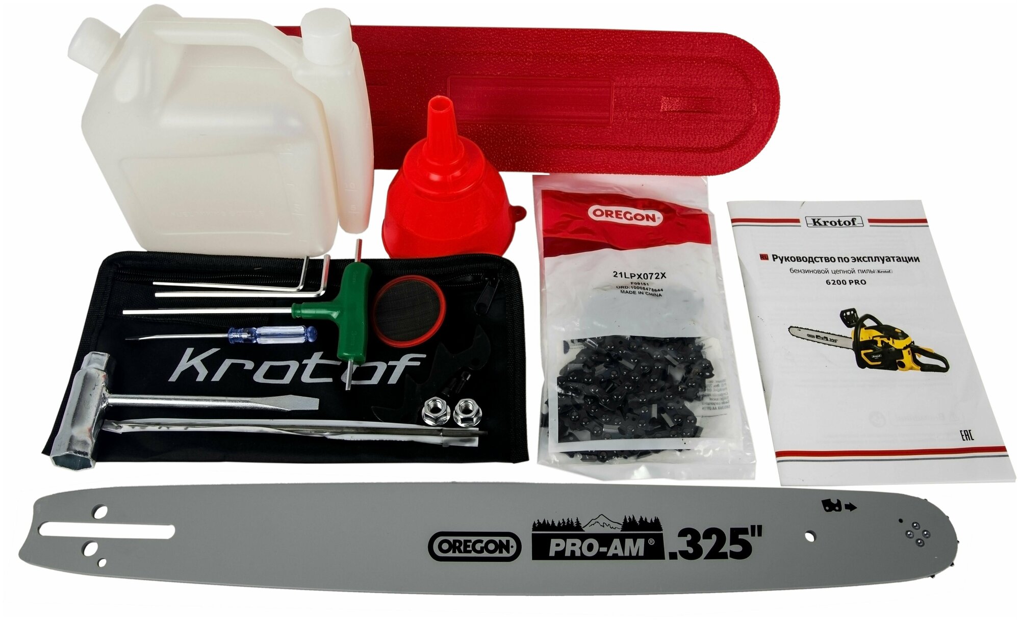 Chainsaw Krotof 6200 PRO / petrol chain saw 62 cc see 2.7 kW 3.7 l. c, Oregon saw set, Walbro carburetor, 18 bar, two chains