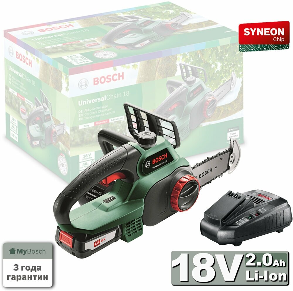 Battery pack PBA 18V 2.5Ah W-B, charger AL 1830, chain saw oil 80 ml, saw chain, chain guard, guide rod