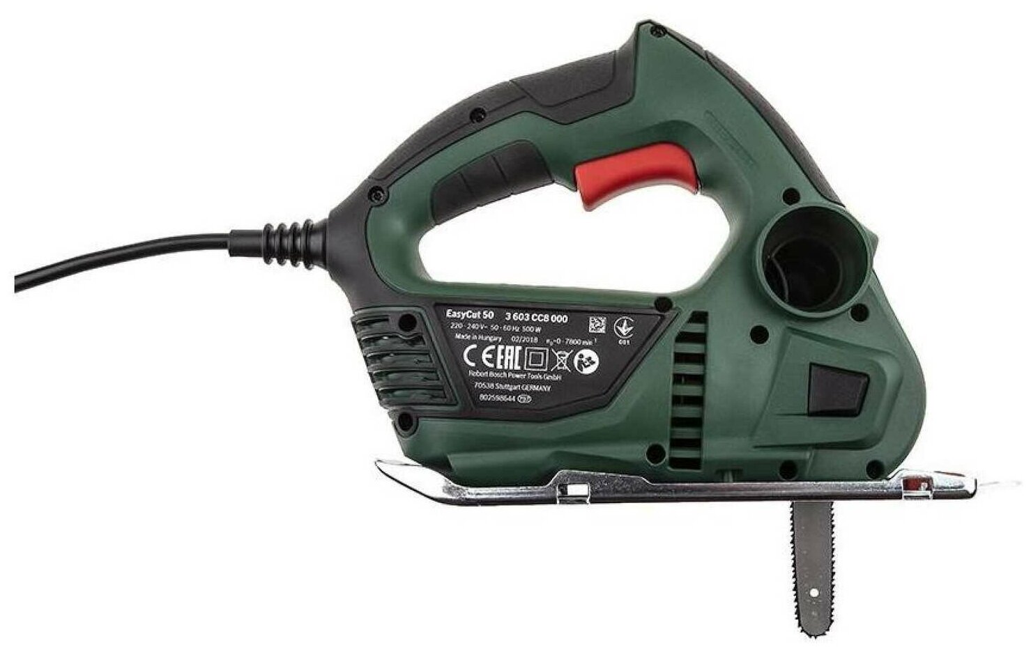 Type of power supply: from the mains, power: 500 W, design features: the ability to connect a vacuum cleaner, wood cutting depth: 50 mm, weight: 1.60 kg