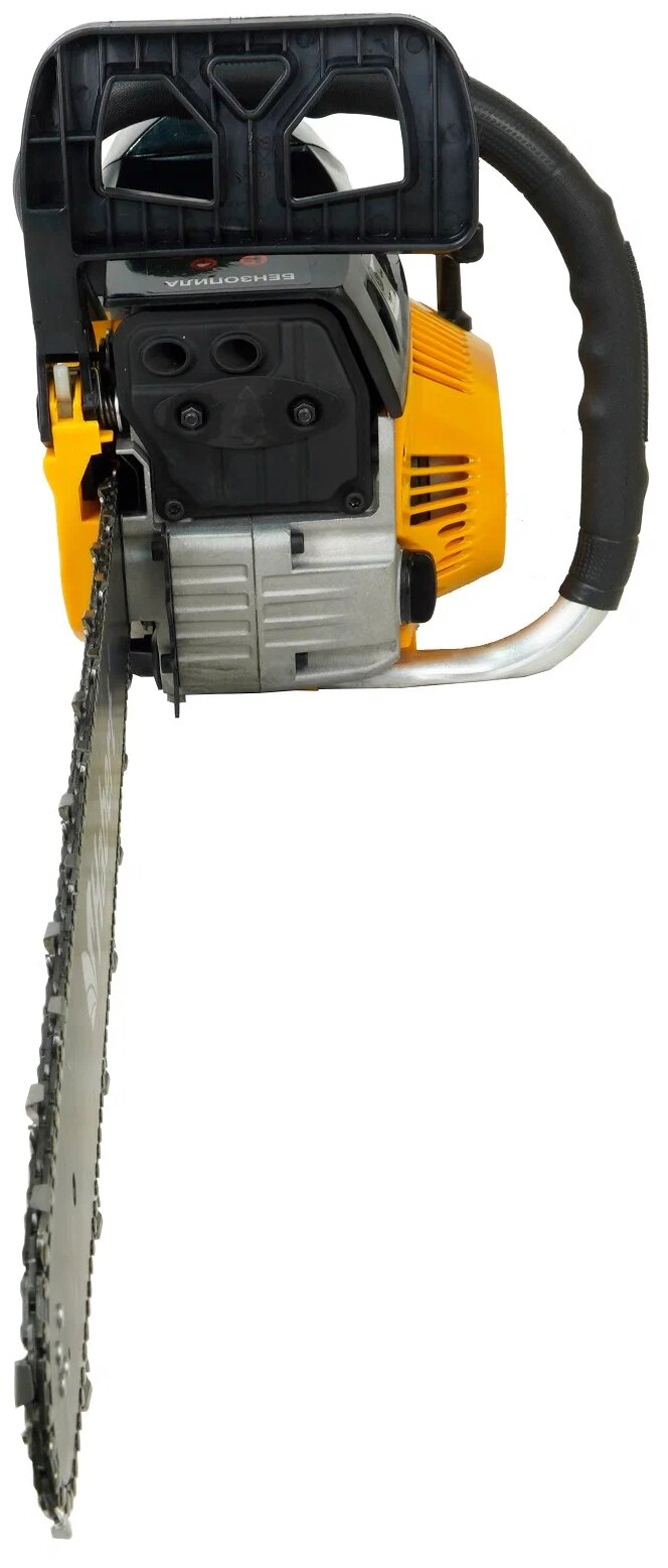 Chainsaw, tire, chain, protective casing of the tire, support toothed comb, container for mixing the fuel mixture, screwdriver, hex wrench - 2 pcs., combo spark plug wrench, product passport, packaging