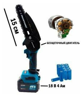 Battery operated, bar length: 13 cm, chain pitch: 1/4", weight: 1.10 kg