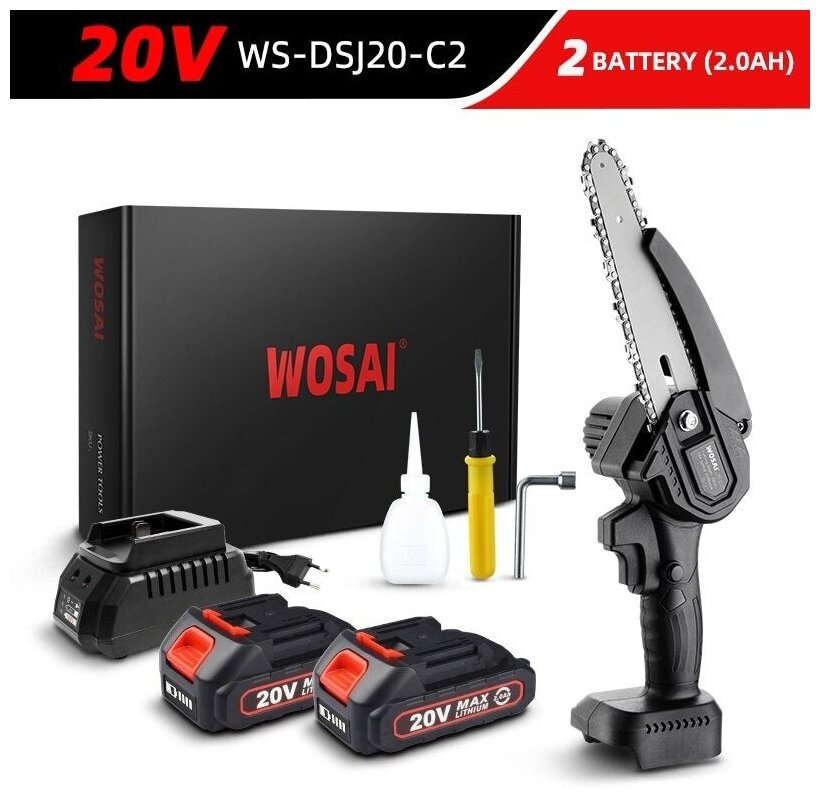 Saw, 2 batteries, charger, 3 accessories, paper box