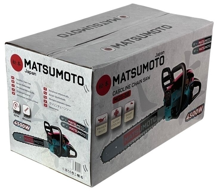 Engine type: gasoline, W: 4500 W, hp power: 4.80 hp, chain pitch: 0.325 inch, engine size: 58 cm³, cutting length: 450 mm, anti-vibration, soft start, weight: 6 kg