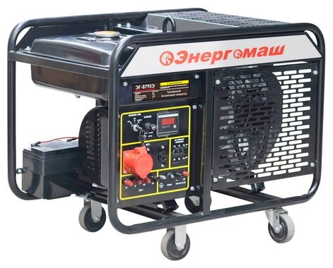 Type: gasoline, rated power: 8500 W, maximum power: 9500 W, start: manual, electric, number of phases: 3, weight: 154 kg, cooling type: air, noise level: 72 dB, Number of sockets 220 V: 3