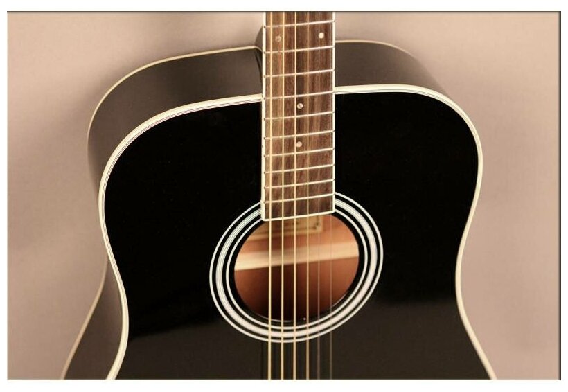 Type: Acoustic guitar, electric guitar, body type: drednought, orientation: right-handed, number of frets: 20, number of strings: 6-string metal, scale length: 650 mm, presence of pickup: without pickup, body material