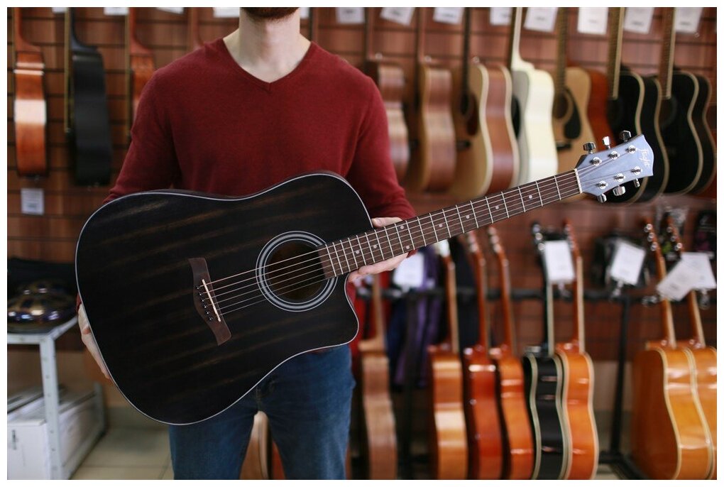 Type: western guitar, body type: drednought, orientation: right-handed, number of frets: 20, number of strings: 6, scale length: 650 mm, pickup availability: no pickup, cutaway, body material: mahogany, material