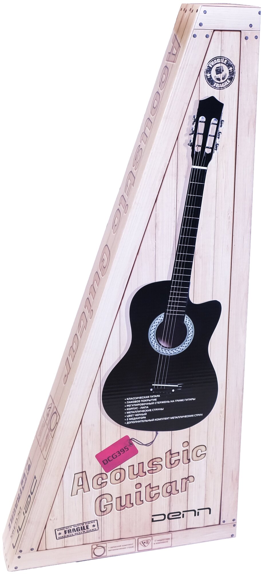 Type: classical guitar, orientation: right-handed, number of frets: 19, number of strings: 6, scale length: 650 mm, body material: linden, neck material: maple, color: black