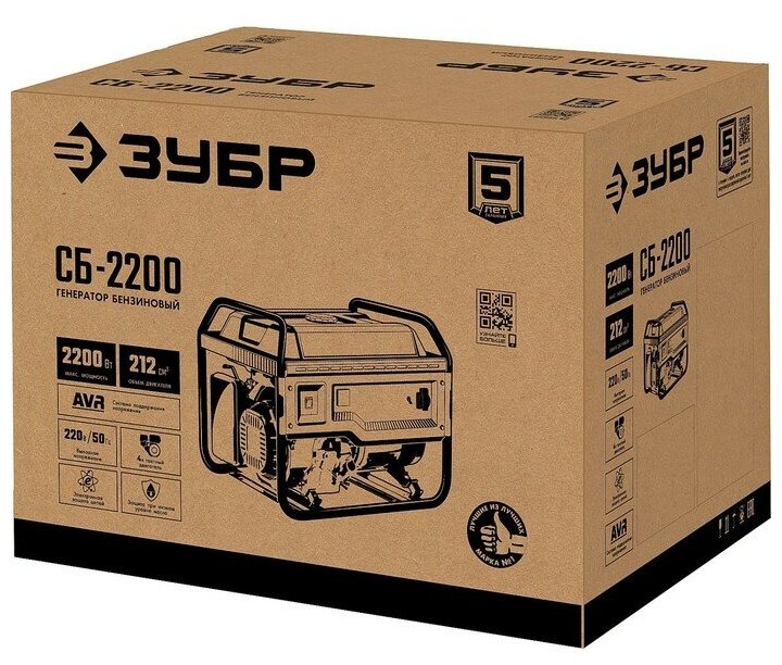 Gasoline generator ZUBR SB-2200, 4T, 2200 W, 7.5 l. s, 1x220 V, manual start. Pack of pcs: 1