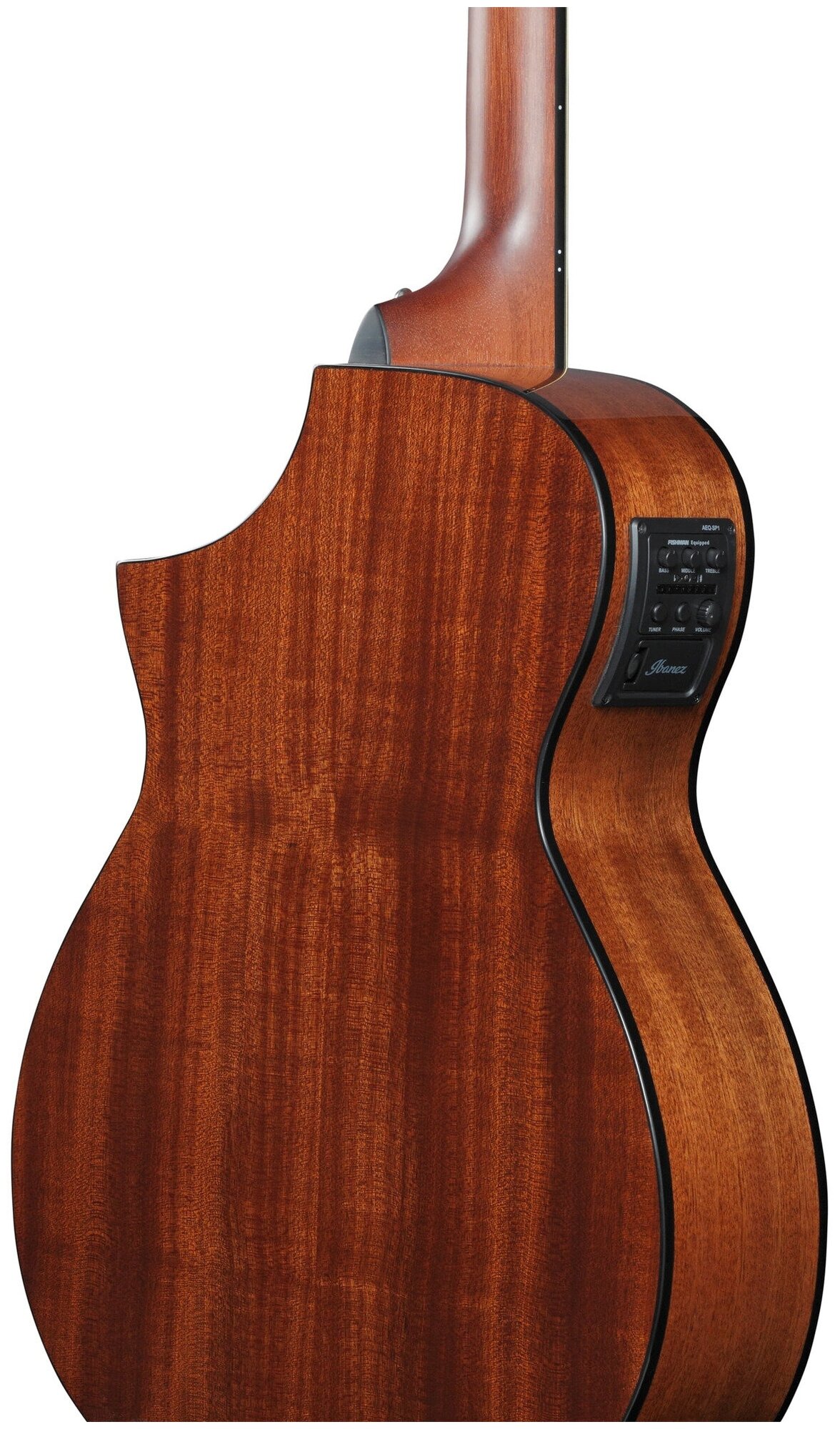 Type: electro-acoustic guitar, number of frets: 20, number of strings: 6, scale length: 634 mm, cutaway, neck material: Nyaton, color: brown
