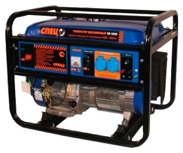 Type: gasoline, rated power: 5000 W, maximum power: 5500 W, start: manual, number of phases: 1, engine power: 13 HP, weight: 73 kg, cooling type: air, noise level: 74 dB, Number of sockets 220 V: 2, autonomy: 10
