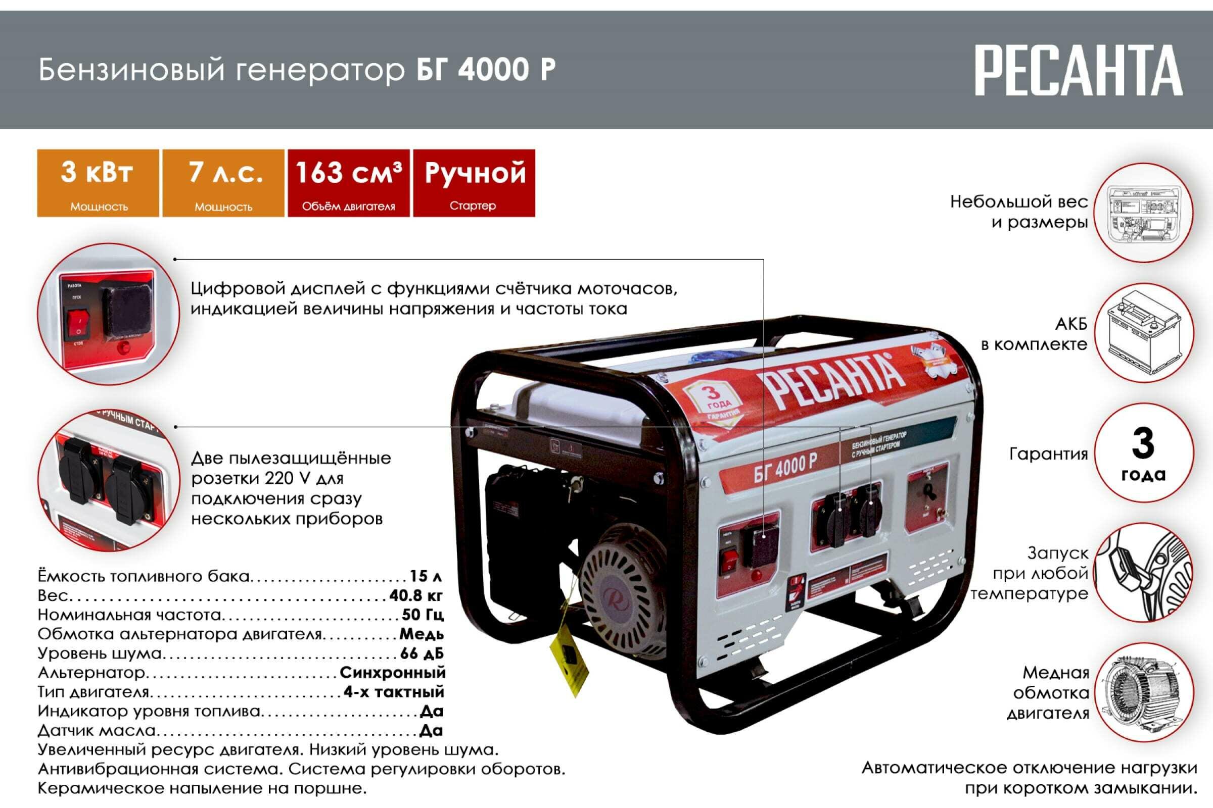 Gasoline generator RESANTA BG 4000 R 3000 W