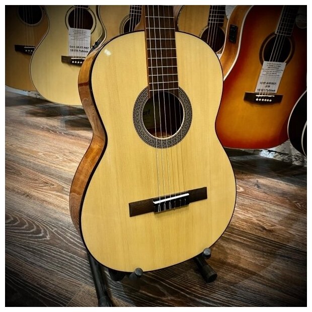 Type: Acoustic guitar, electric guitar, body type: drednought, orientation: right-handed, number of frets: 20, number of strings: 6-string metal, scale length: 650 mm, presence of pickup: without pickup, body material