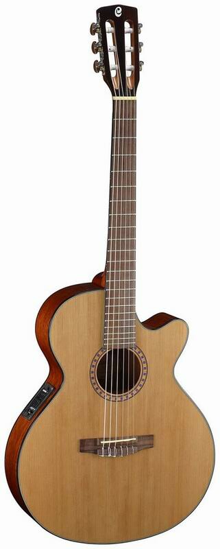 Type: electro-acoustic guitar, body type: Classic, orientation: right-handed, number of frets: 21, number of strings: 6, scale length: 643 mm, presence of pickup: with pickup, with cutout, body material: cedar, red