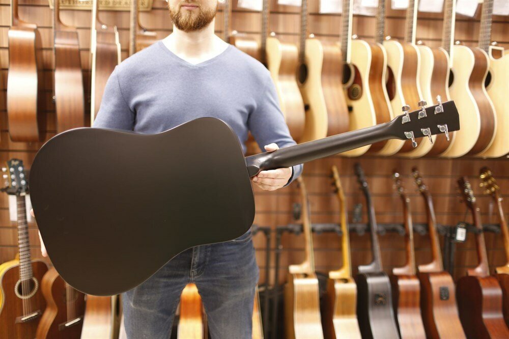 Description: Type: Acoustic guitar, electric guitar, body type: drednought, orientation: right-handed, number of frets: 20, number of strings: 6-string metal, scale length: 650 mm, presence of pickup: without pickup, body material