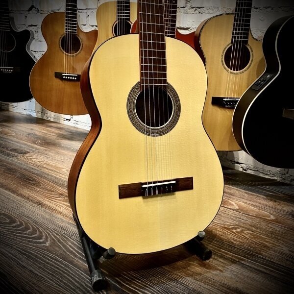 Type: classical guitar, orientation: right-handed, number of frets: 19, number of strings: 6, scale length: 650 mm, presence of pickup: without pickup, body material: spruce, mahogany, neck material: mahogany